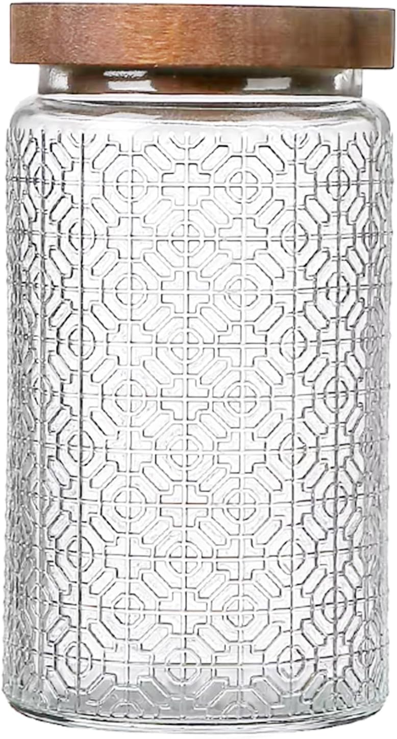 Vintage Glass Jars with Wooden Lids, 34 oz Airtight Glass Food Storage Containers Sets for the Kitchen, Sugar Candy Coffee Cookie Tea Spice Pasta