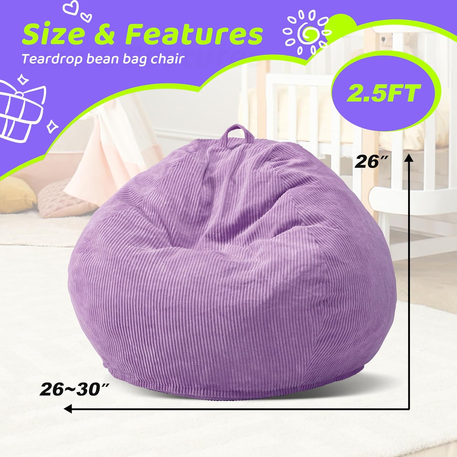 Bean Bag Chairs Teardrop Bean Bag Chair Beanbag Chair with Memory Foam Filled Machine Washable Cover for Living Room, Bedroom (Small,Purple)