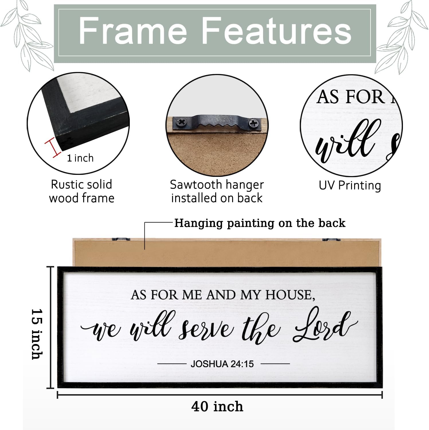 As for Me and My House We Will Serve the Lord Wall Decor - 40" x 15" Large Rustic Family Living Room Wood Framed Home Sign Joshua 24 15 Christian Bible Verse Plaque Hanging Wall Art(Black)