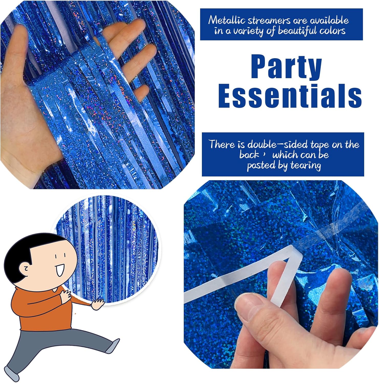 3 Pack Blue Backdrop Party Streamers Ocean Themed Decor Birthday Party Decorations Foil Fringe Backdrop Curtain Graduation Bachelorette Winter Holiday Gender Reveal Party Decorations Supplies