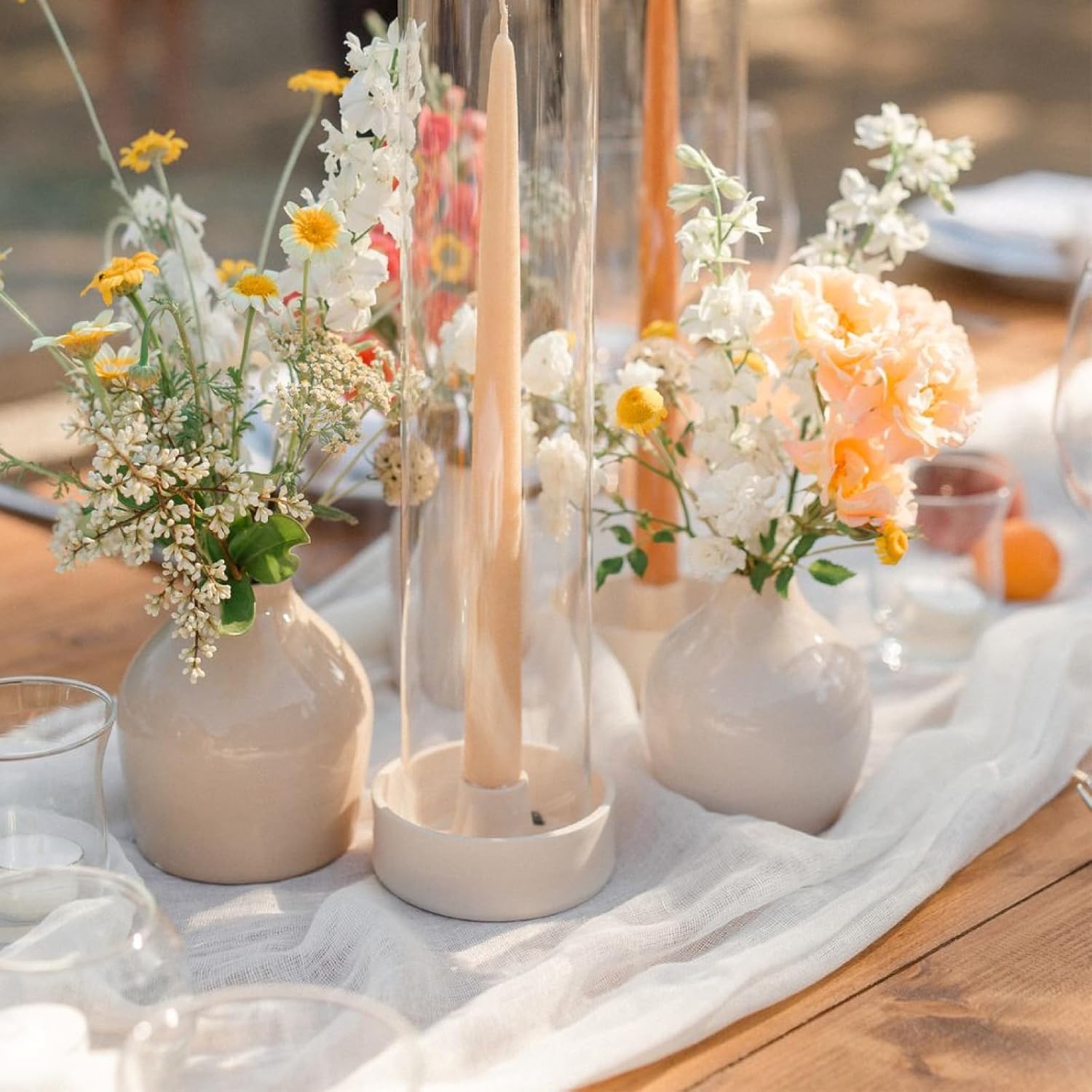 - 【Package Includs】5pcs Cheesecloth table runner (35" W x 120" L), all neatly packed in a transparent plastic bag. This versatile table runner is specifically designed to fit most types of tables.