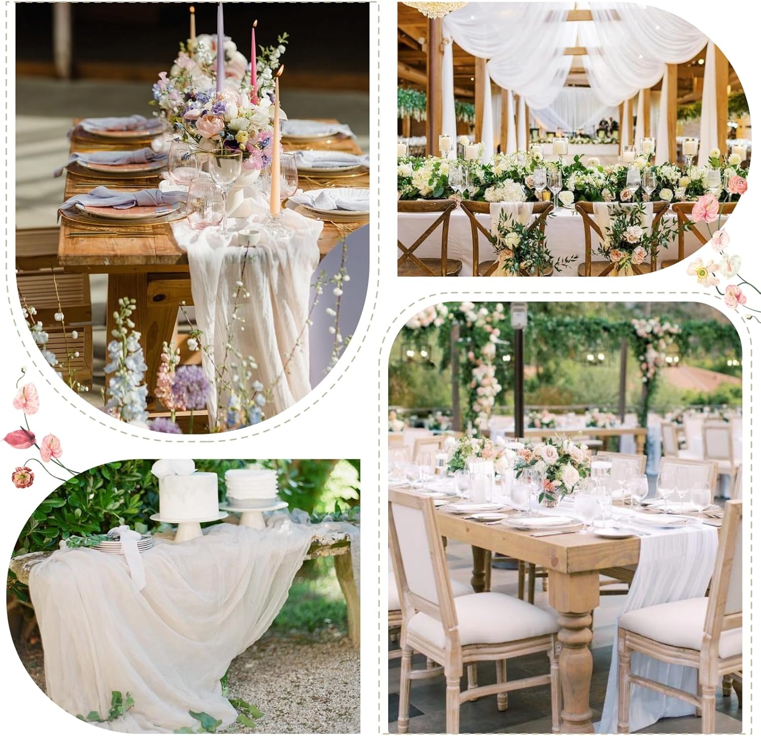- 【Diversified Use】Boho cheesecloth Table Runner is necessary choice for beautifying tables. It's used for home decor, outdoor events, formal and informal setting in all seasons. Such as wedding decor, baby shower, bridal showers, parties, engagement banquet, Valentine's Day, Thanksgiving, Christmas.