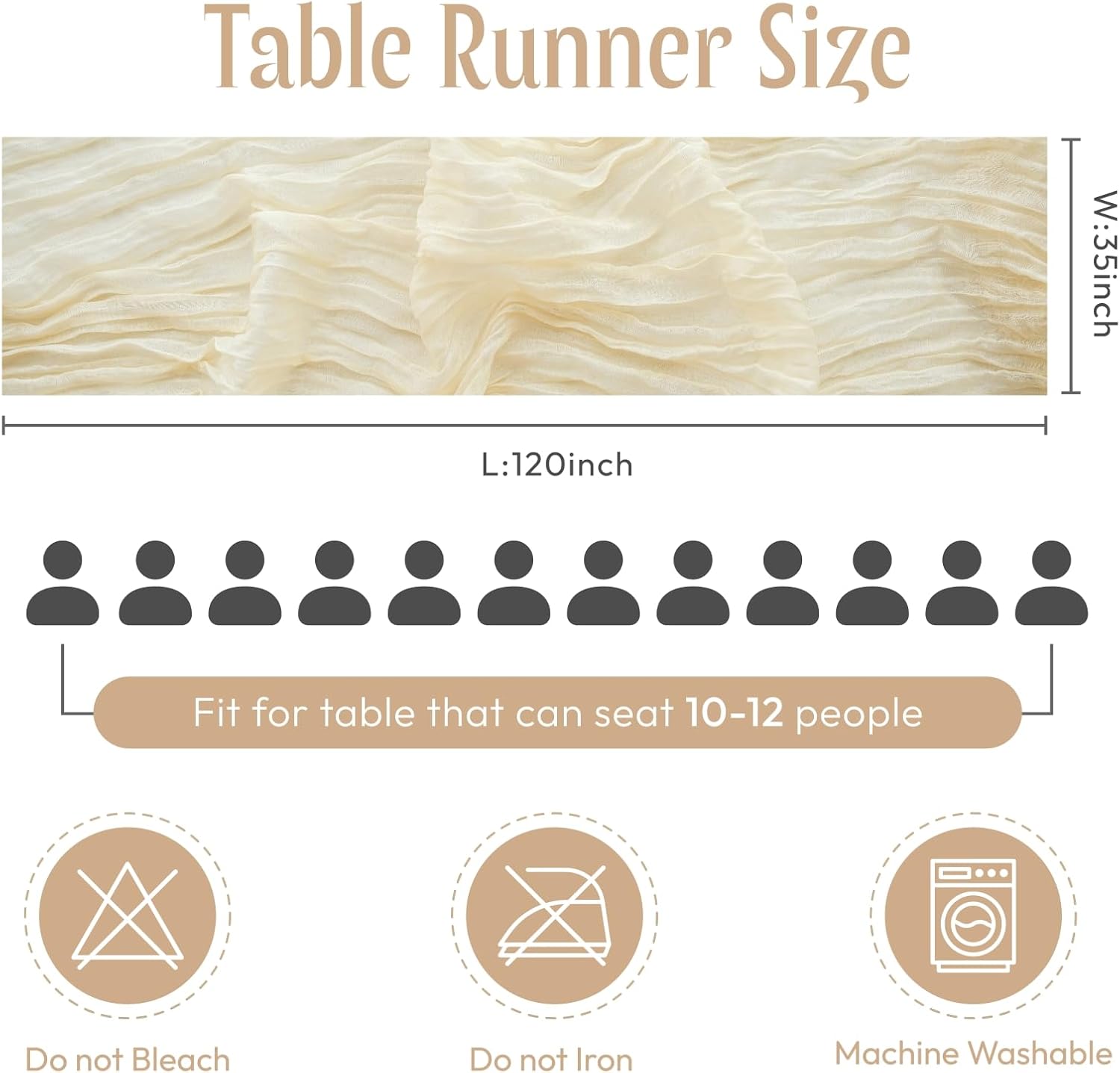 - 【Package Includs】5pcs Cheesecloth table runner (35" W x 120" L), all neatly packed in a transparent plastic bag. This versatile table runner is specifically designed to fit most types of tables.