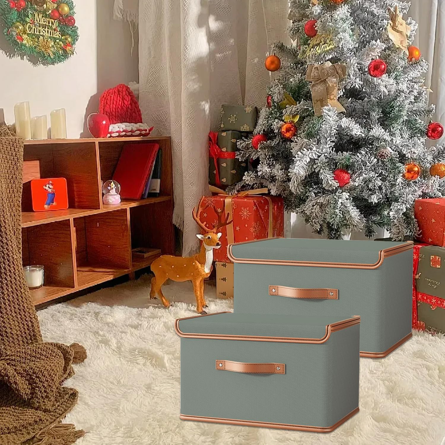 Tuza 2 Pack Storage Bins with Lids, Collapsible Closet Organizer Container, Fabric Organizer Box with Handles, Decorative Storage Boxes with Lids for Organizing Clothes, Blanket, Grey, Large