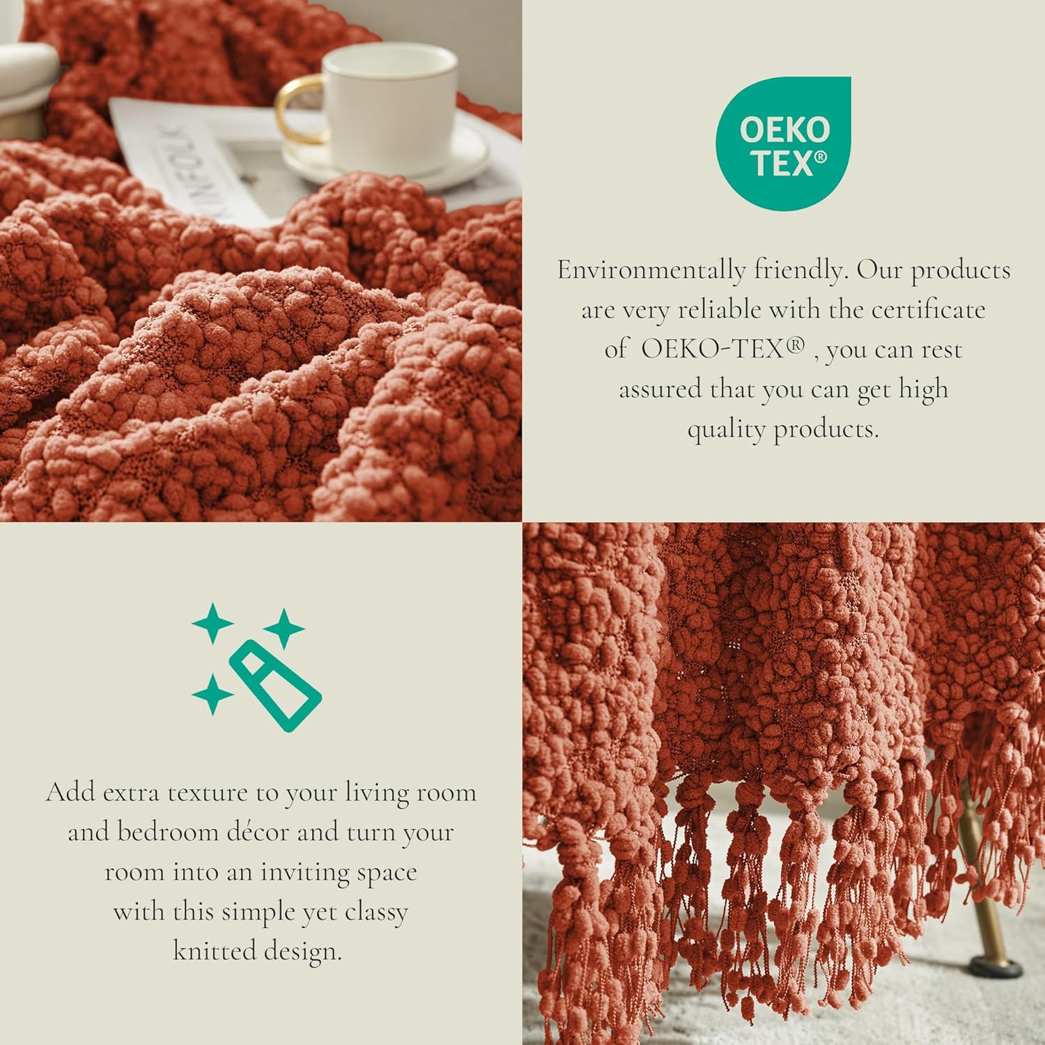 - PREMIUM DURABLE QUALITY: Woven from high-density yarns, this decorative throw resists shrinking, wrinkling, and fraying – even after repeated washes. The reinforced tufted details and hand-tied fringe stay intact for long-term use, while the lightweight build ensures easy draping.