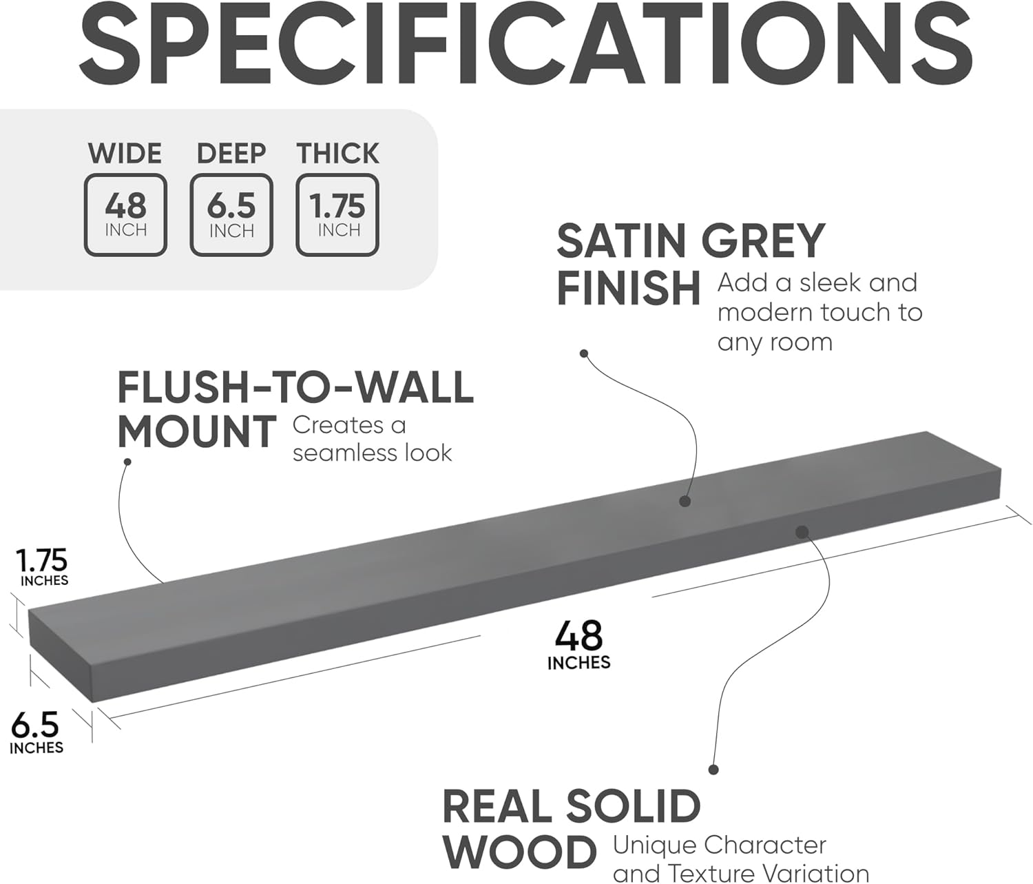 - AUTHENTIC WOOD GRAIN - Enjoy the timeless elegance of real wood. Handcrafted from the finest 1.75" Thick natural pine wood measuring 48" Wide x 6.5" Deep x 1.75". Our shelves highlight the inherent charm and durability of high-quality wood. Each Shelf reveals its unique character of knots and natural wood grain; each ledge is a little different but equally stunning.