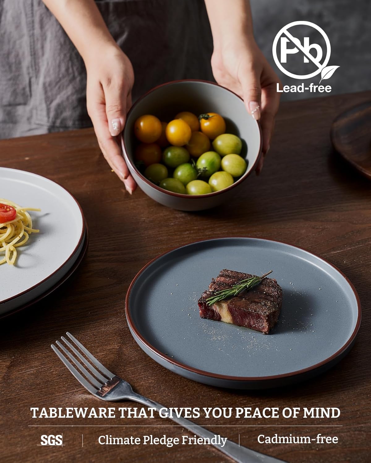 - ăFOOD GRADE NATURAL GLAZEăAll of our dinnerware sets are made of food grade glaze. You can safely use them to serve steaks, salads or desserts, no need to worry about any harmful substances leaching into the food.