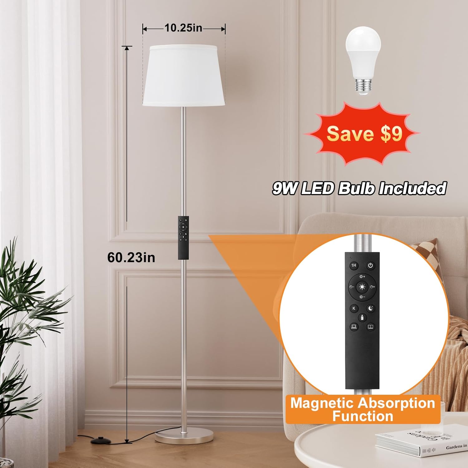 【Upgraded】Floor Lamps for Living Room, Modern Floor Lamp with Remote Control, Dimmable Colors Temperature Standing Lamp Foot Switch, 9W Bulb Tall Lamps for Bedroom Office Kid Room - Silver