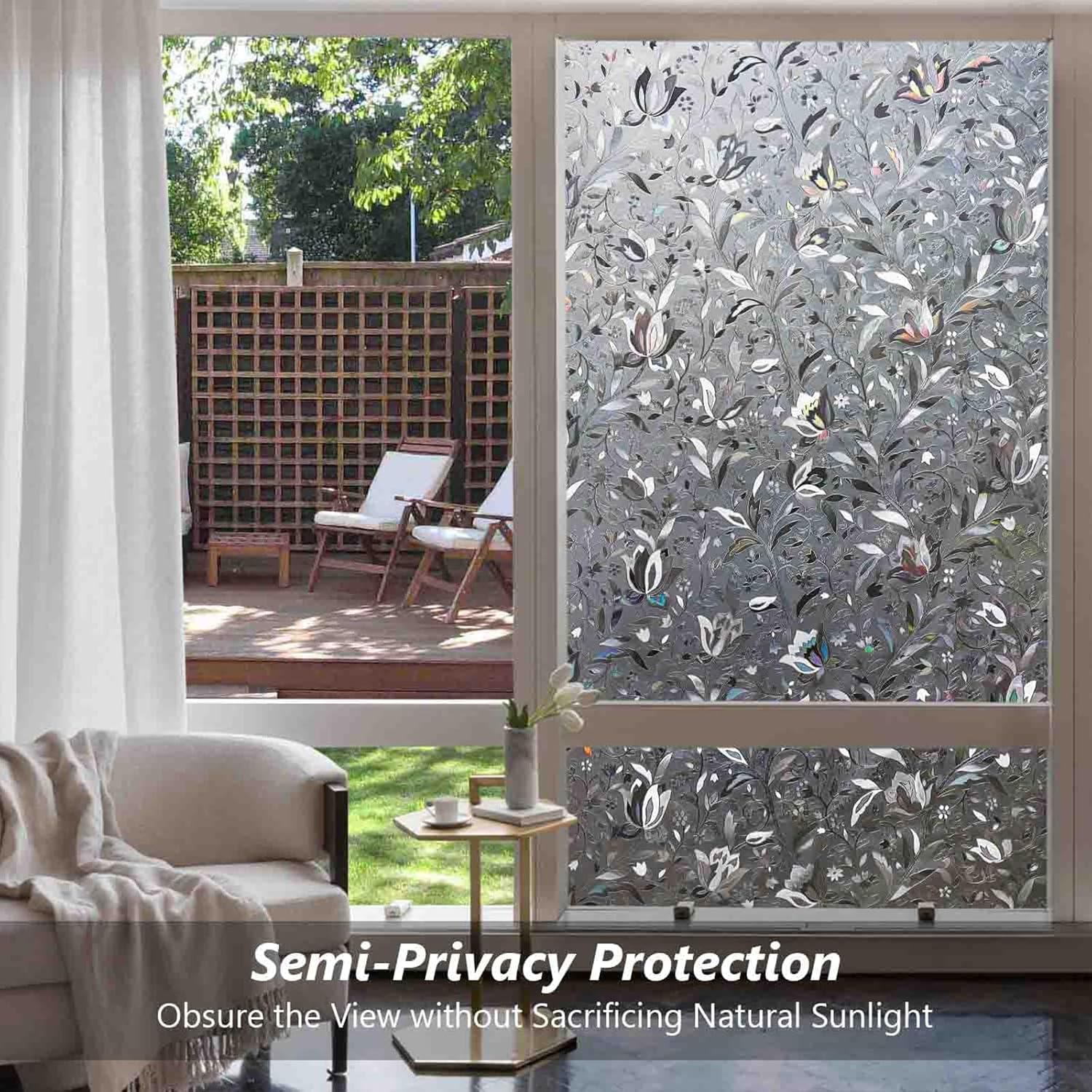 - SEMI-PROTECTED PRIVACY: Enjoy semi-privacy protection with our window privacy film that preventing people outside from seeing directly into the room and obscuring outdoor views. The decorative window film also softens harsh sunlight while still allowing natural light in, creating a comfortable environments