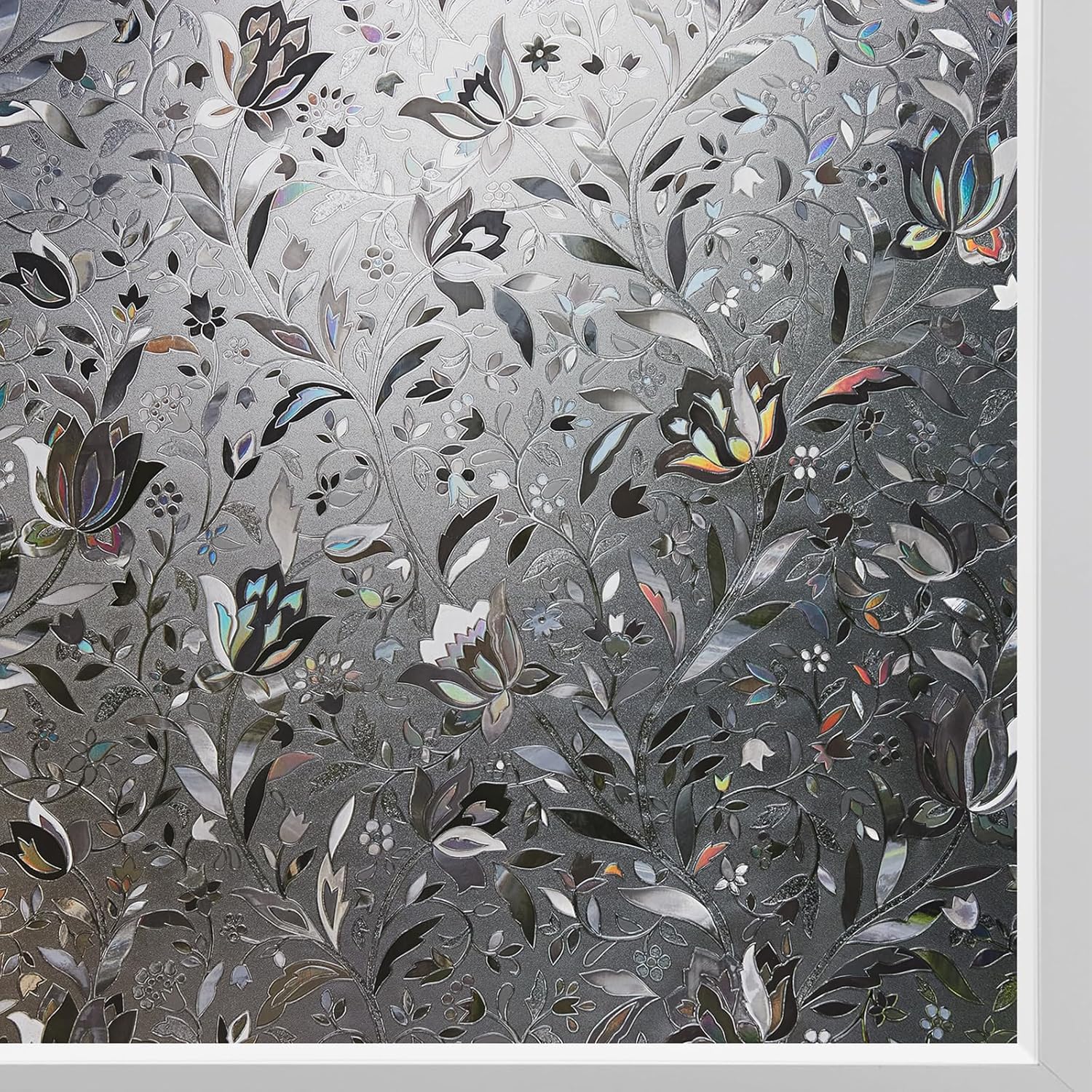 - UNIQUE TULIP PATTERN: Special laser tulip patterns of this window film creates a visual effect like rainbow by strong light and brings unique decoration on your glass. It is an excellent way to add colors to your room without the need for traditional stained glass windows