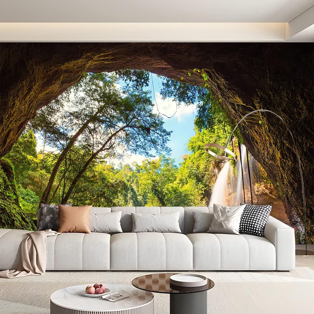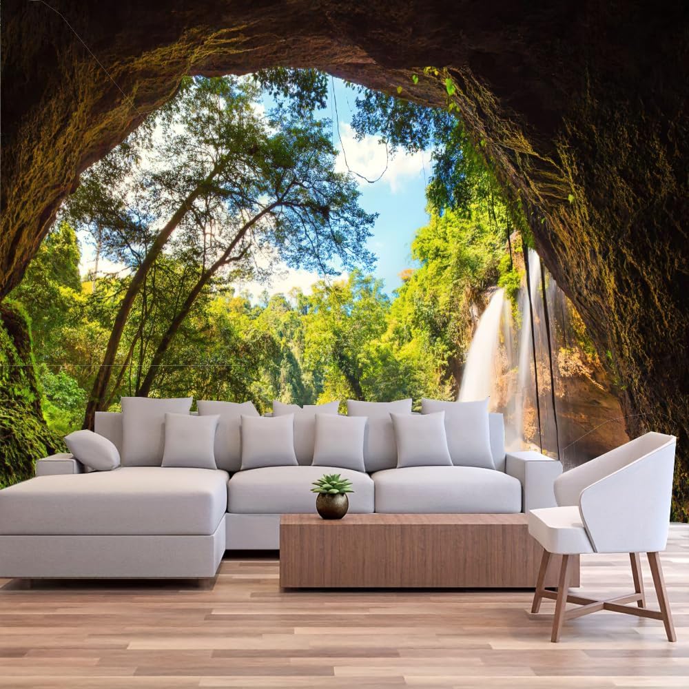 FENDROM Green Misty Forest Tapestry Wall Hanging Nature Mountain Cave Landscape Tapestry Waterfall River Tapestries for Bedroom Living Room Dorm Decor