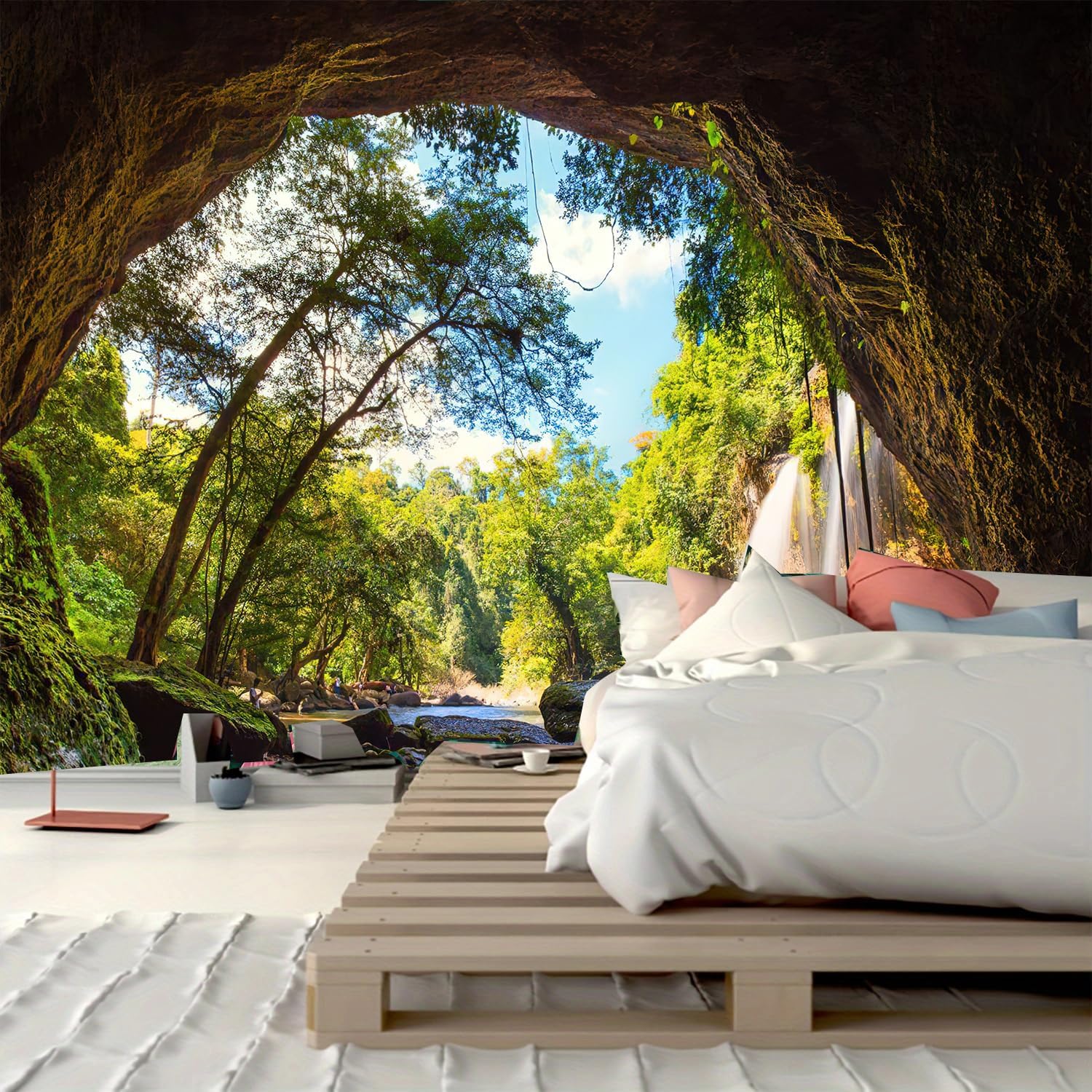 - ★AMAZING MATERIAL:Nature forest tapestry is made of light-weight polyester. You can easily use regular tacks to bind it at the position where you want to decorate. It will give you a beautiful view in the room.