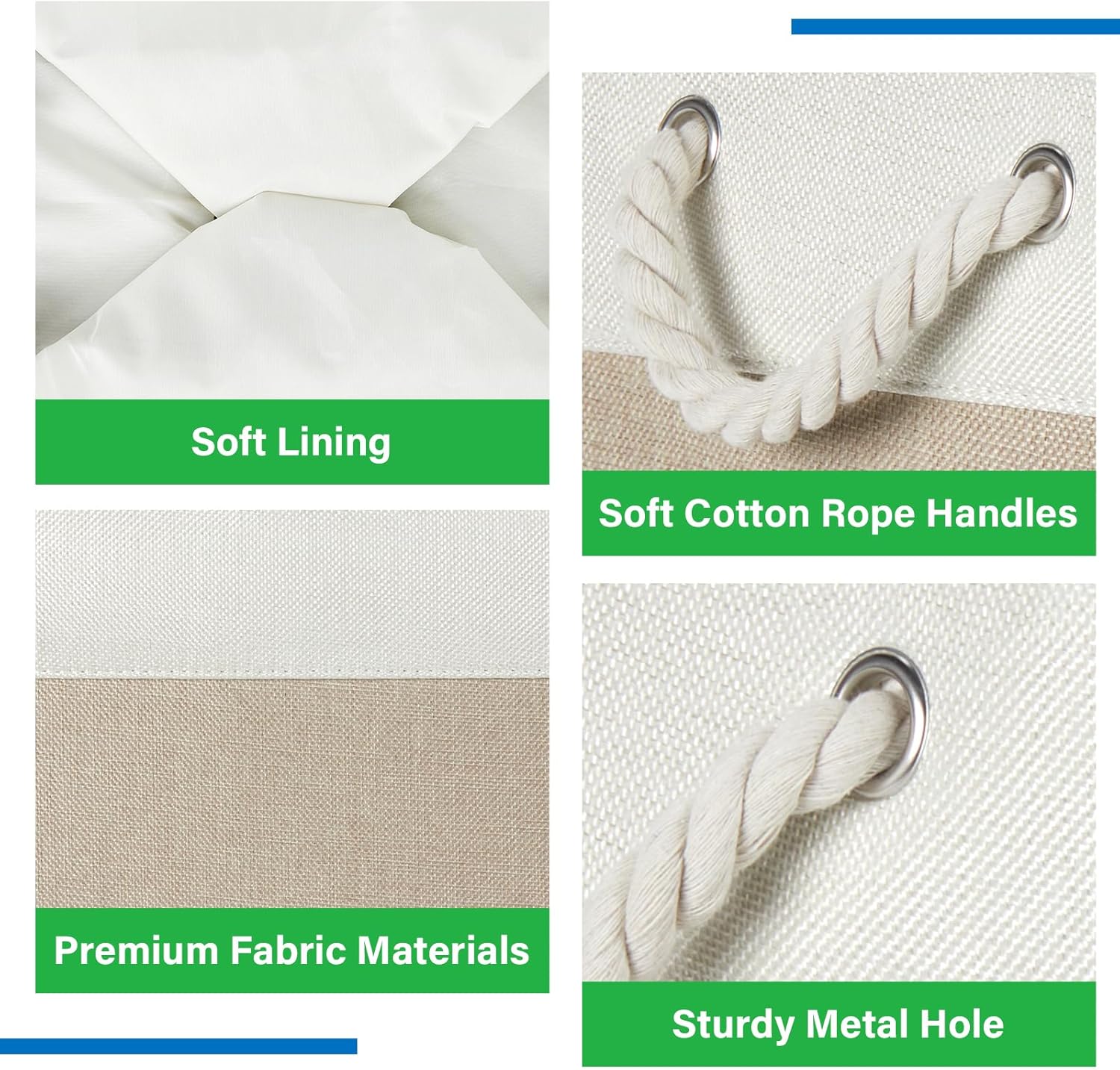 - Cotton Rope Handles & Premium Fabric: Soft handle will give you a very comfortable grip feeling, will not feel strangled hands, more easier to use the linen basket. The canvas storage bins equipped with soft and sturdy handles for moving conveniently. Sturdy soft handles on both sides are convenient to retrieve from shelves. These closet storage baskets are made of durable fabric which is strong and lightweight