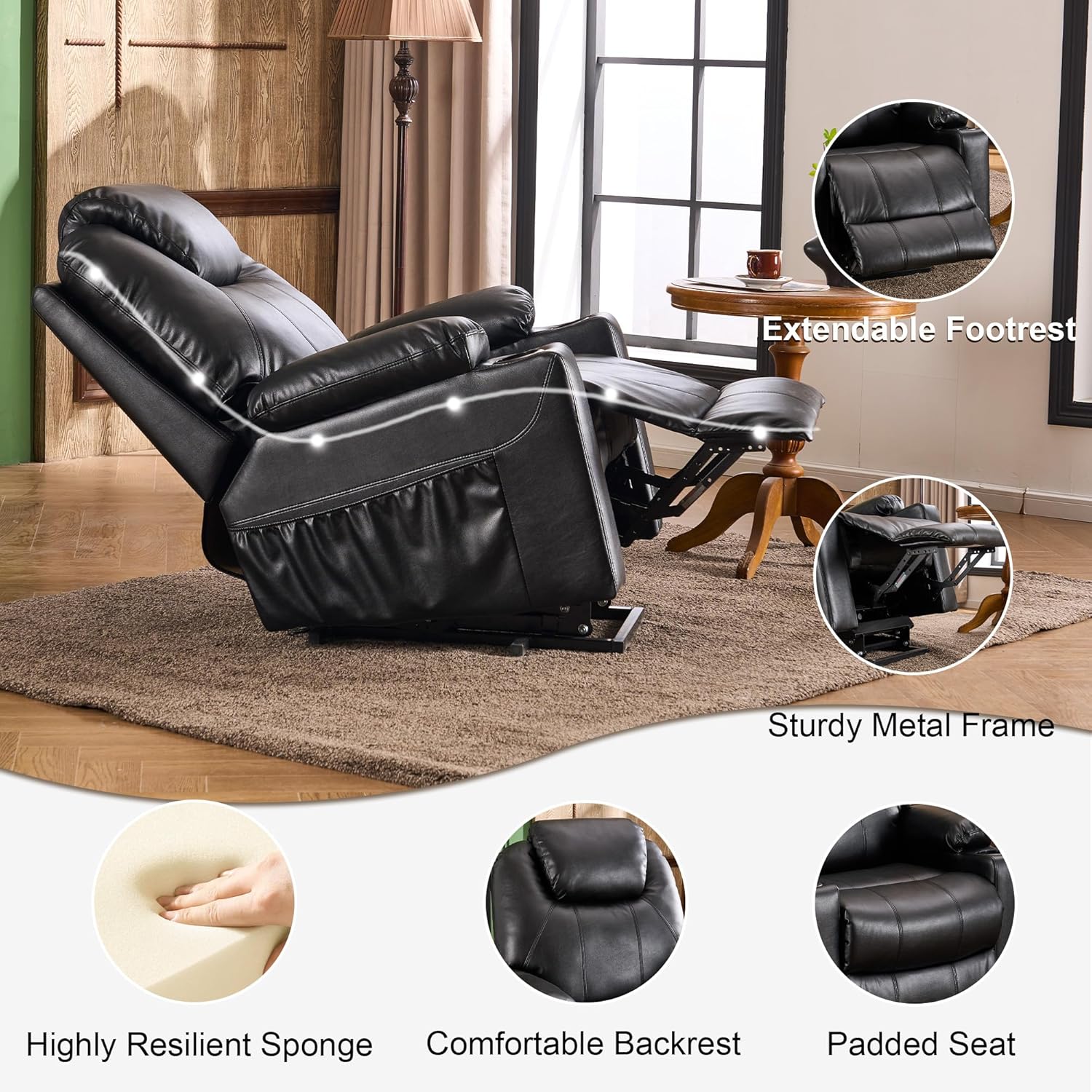 SALOHZA Power Lift Recliner Chair for Elderly with Massage and Heat for Living Room, Electric Recliner Chair for Adults with USB/Type C Port/Cup Holders, PU Faux Leather, Black