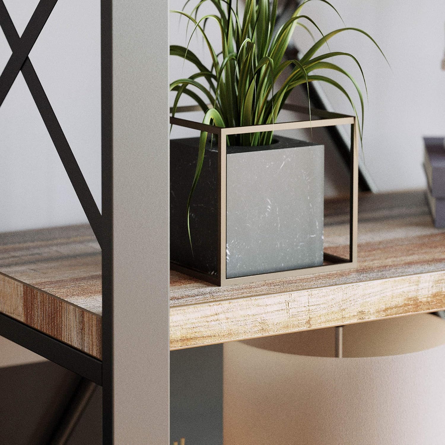 - Durable and Solid: This large bookshelf is made of thicker metal frame and P2 grade MDF board, which adds industrial-inspired style to your decor. The Crossbar design at back makes the bookshelf more stable and durable