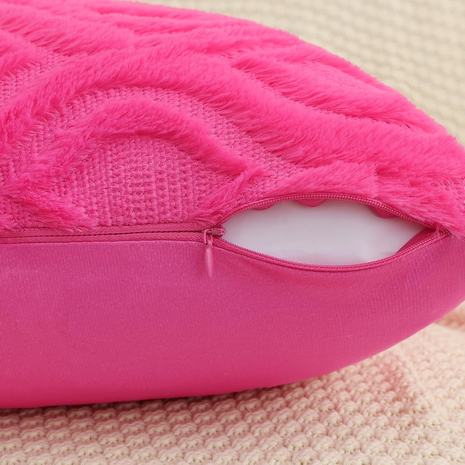 decorUhome Fall Throw Pillow Covers 16x16 Inch Set of 2, Soft Plush Decorative Faux Fur Hot Pink Solid Couch Pillow Covers, Accent Farmhouse Neutral Square Euro Pillow Cases for Sofa Bed Living Room