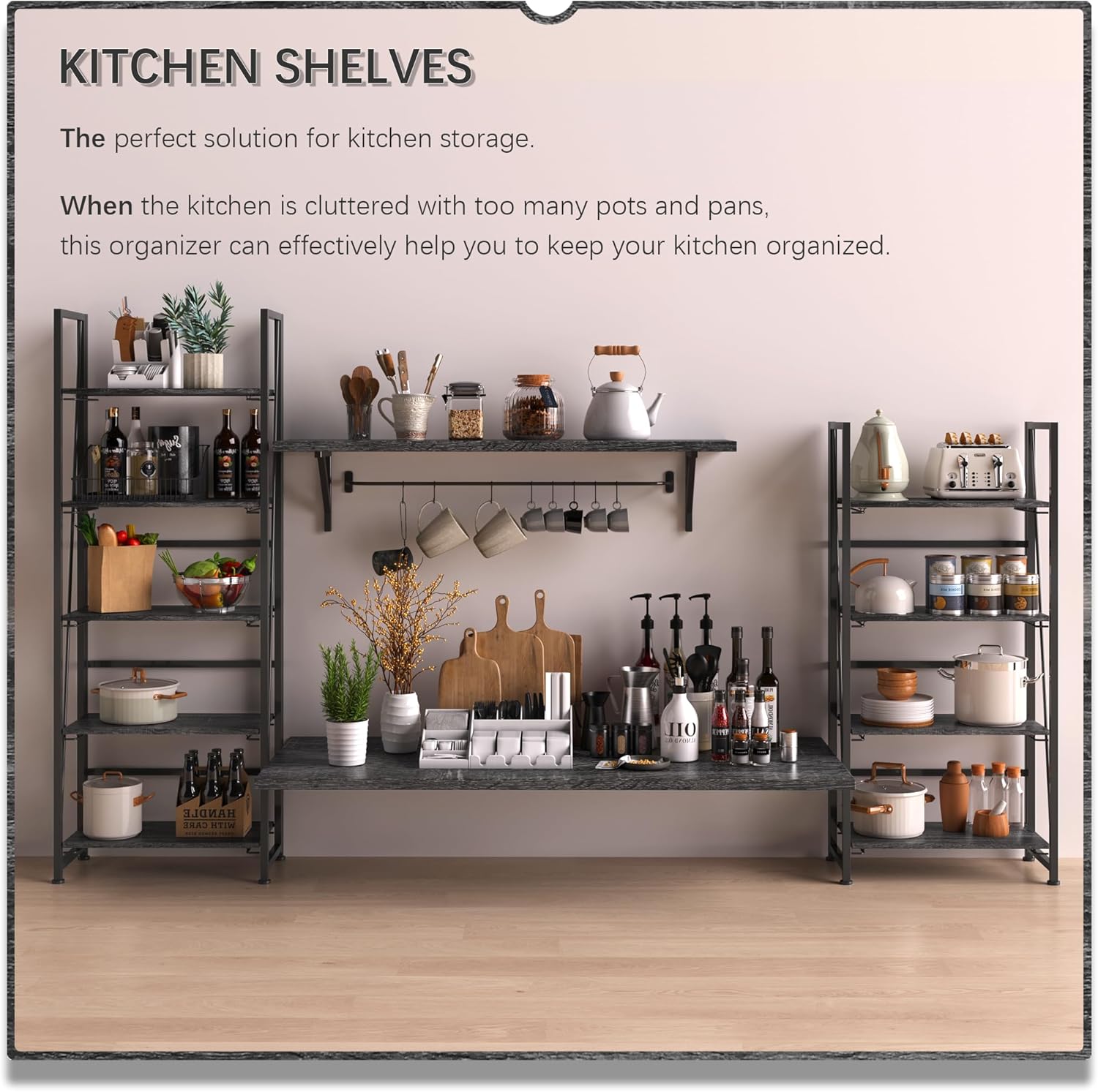 4NM No Assembly Foldable Bookshelf, 5-Shelf Collapsible Bookcase Storage for Small Spaces, 62.2" H, Gray and Black
