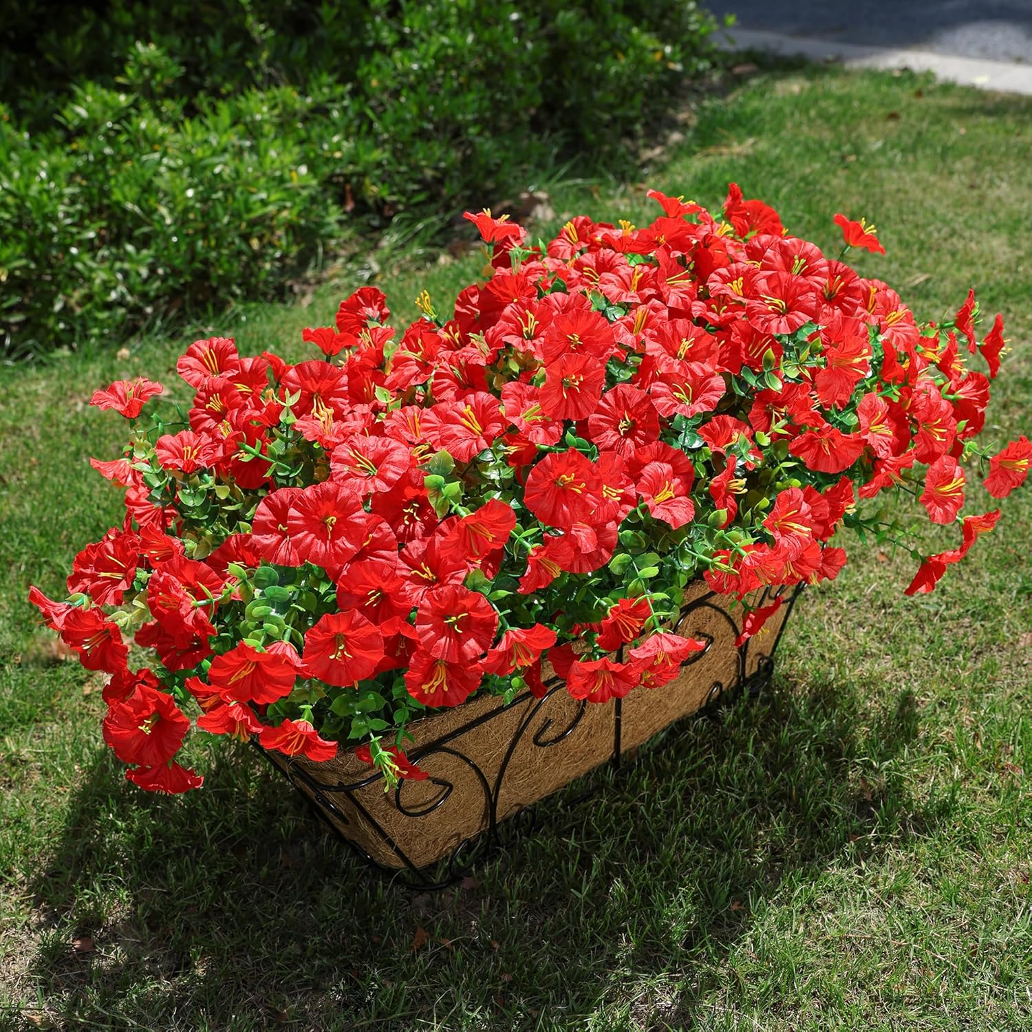 Artificial Flowers for Outdoors Fake Plants Outside Decoration, 12 Bundles Silk Red Morning Glory UV Resistant Look Real Faux Flowers for Planter Front Door Porch Patio Yard Gardens Balcony