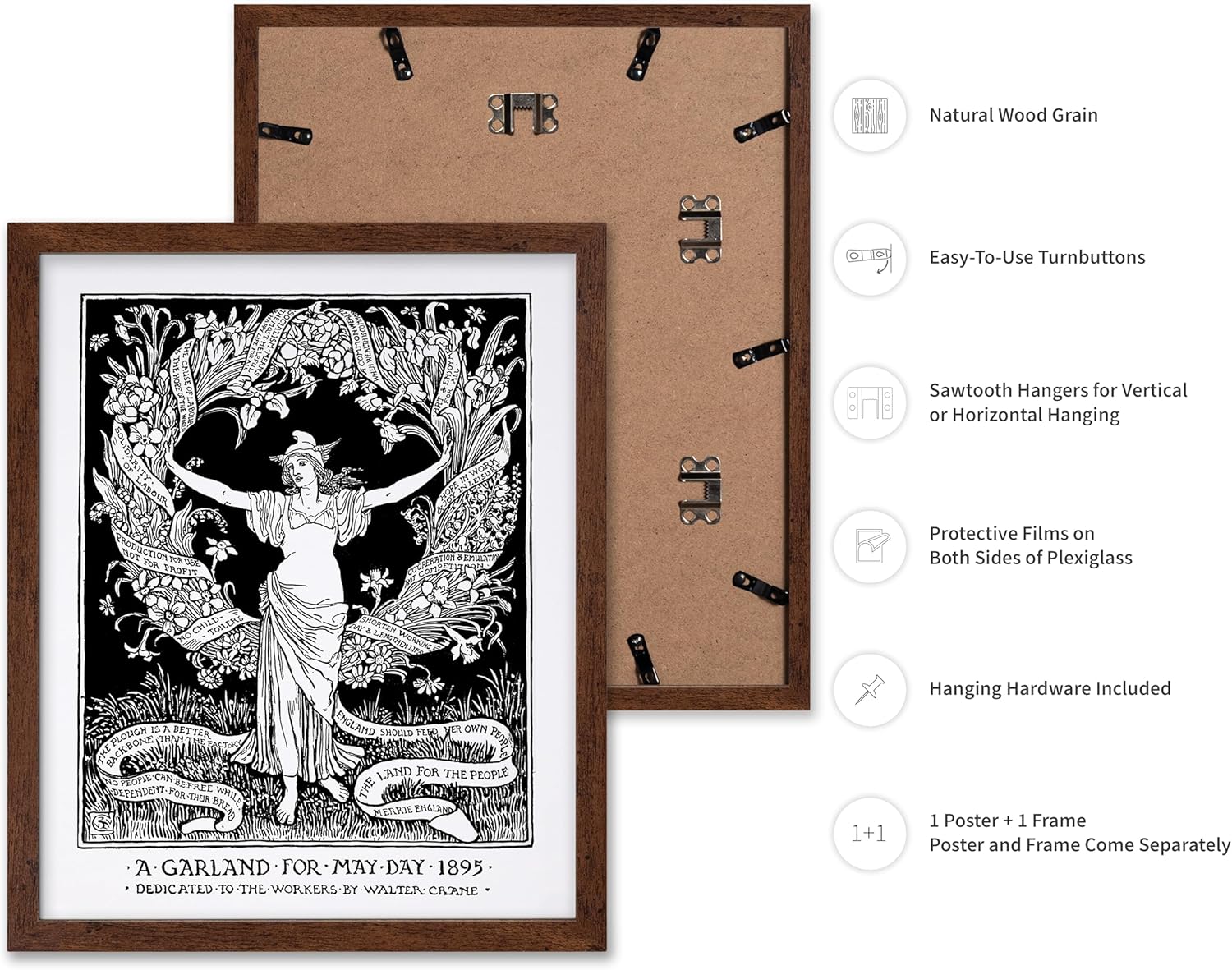Poster Master Vintage Walter Crane Poster - Retro A Garland for May Day Print - Socialist Art - Gift for Him, Her, Men, Women - Wall Decor for Home, Office, Living Room, 16x20 Brown Framed