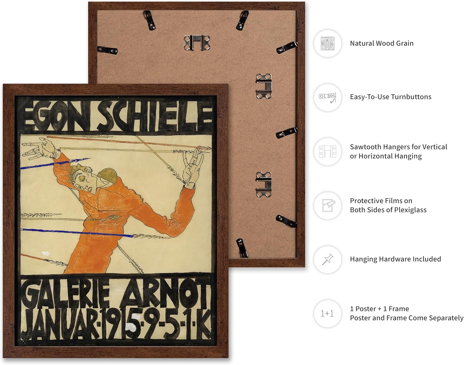 Poster Master Vintage Painting Poster - Retro Expressionism Print - Self Portrait as the Martyred St Sebastian - Gift for Artist, Friend - Wall Decor for Home, Office, 11x14 Brown Framed