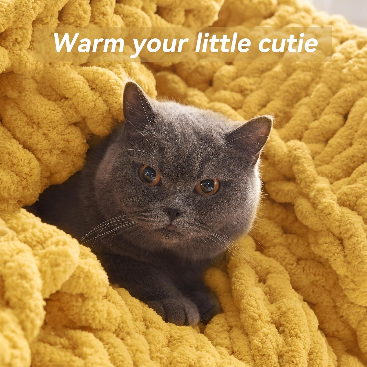 Chunky Knit Throw Blanket, 60''*80'' Knitted Throw Chenille Yarn for Bed Couch, Handmade Yellow Crochet Big Thick Blanket, Machine Washable Cute Comfy Blanket for Home Decor