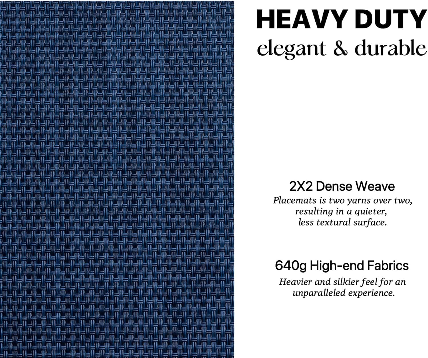 - HEAVY-DUTY:We uses the German-imported higher grammage vinyl material (Specialty PVC)than other placemats on the market,plus the precise,dense weave craftsmanship to give the woven placemats a thicker feel and make the place mats long-lasting.