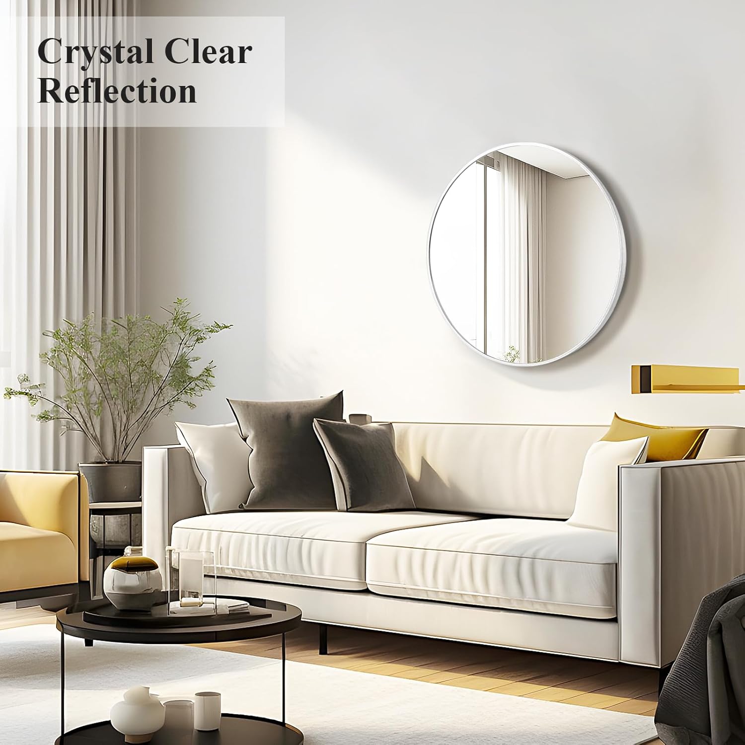 - Crystal Clear Reflection - Fabuday round wall mirror is made of high-definition glass, smooth and flat mirror with high reflectivity, providing clear and real images without any distortion. Besides, the reflection makes the room look bigger and brighter, that is nice and can elevate the space