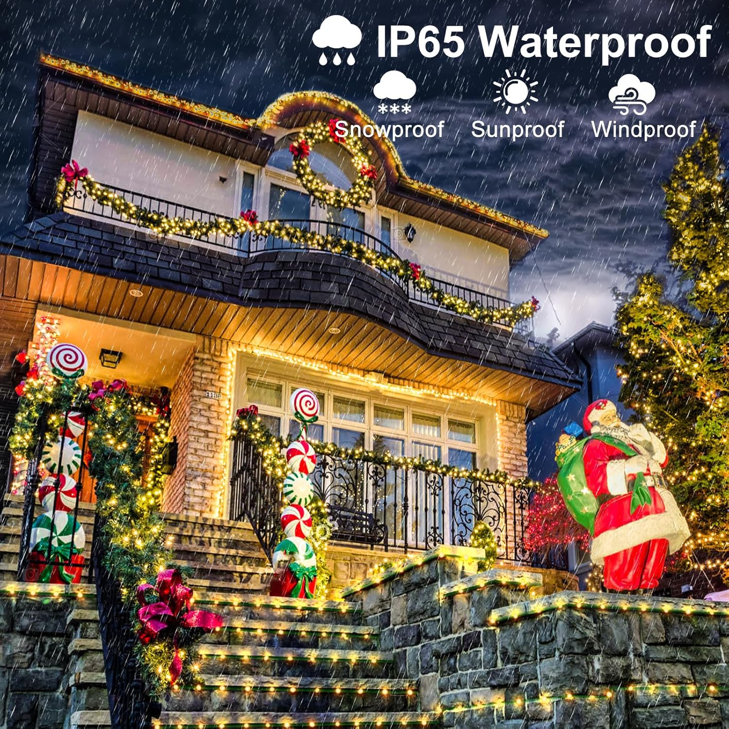 - Ideal for Christmas Decorations: The IP65 waterproof Christmas outdoor lights can withstand all kinds of weather, ideal for year-round use. These green wire twinkle lights are fabulous decorations for your garden, bistro, balcony, terrace, pergola, gazebo, tent, pool umbrella, cafe, bedroom or other occasions. But please note that plug not waterproof.