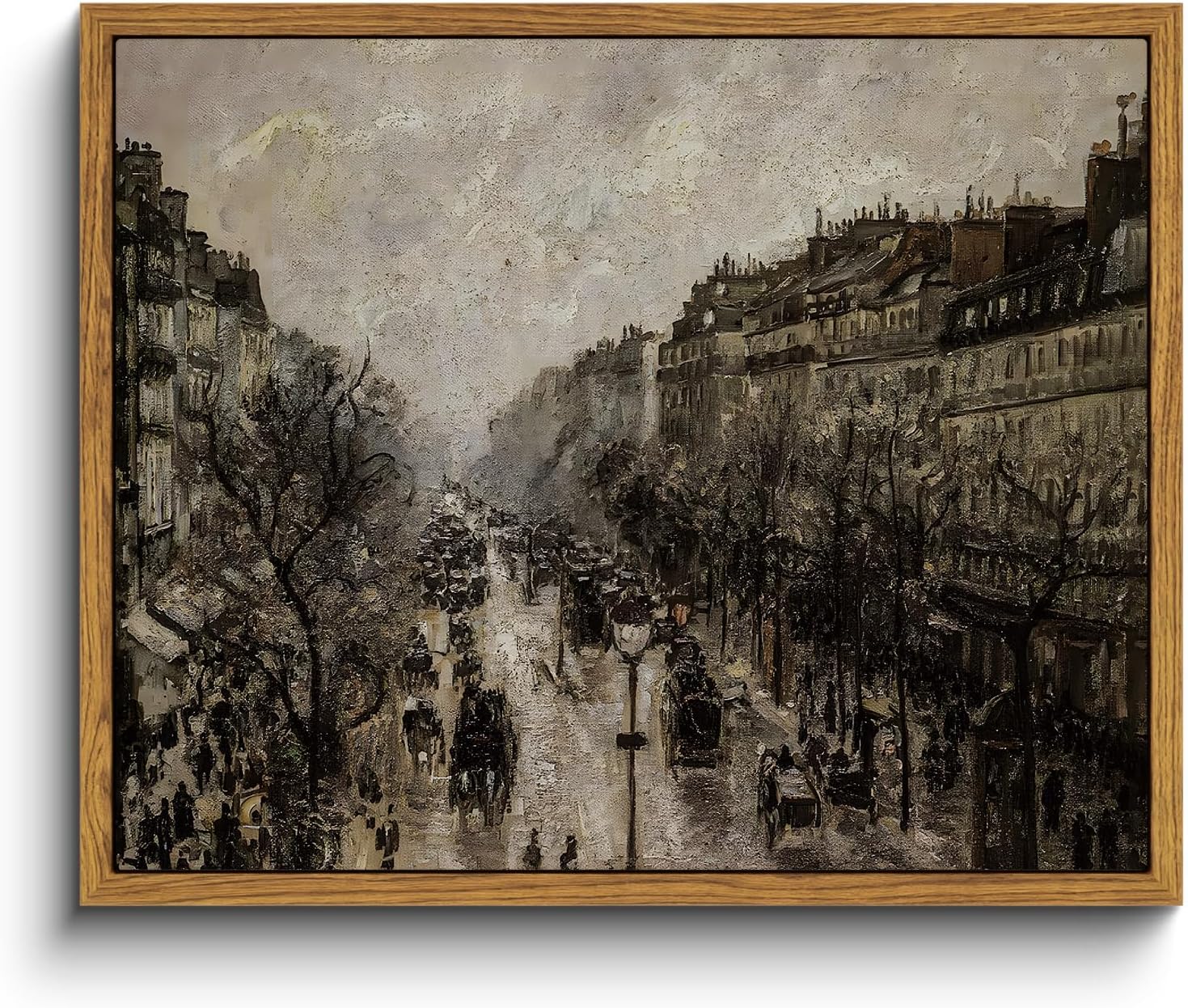 - VINTAGE FRAMED WALL ART DECOR: This painting, "Boulevard Montmartre à Paris" is the work of 19th century French artist Camille Pissarro. This work captures wall art decor not just a Parisian street, but a moment in time, alive with movement and the charm of city life in the rain. This vintage landscape painting can add more classic and elegant elements to your space.