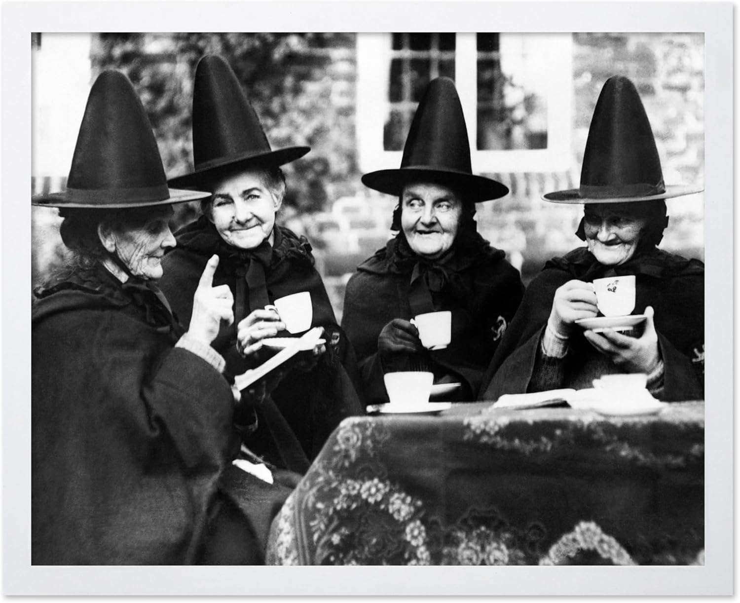 Poster Master Classic Photograph Poster - Vintage Halloween Print - Gift for Artist, Friend - Witches Tea Party, Old Women Smiling, Wearing Robes - Wall Decor for Living Room, 8x10 White Framed