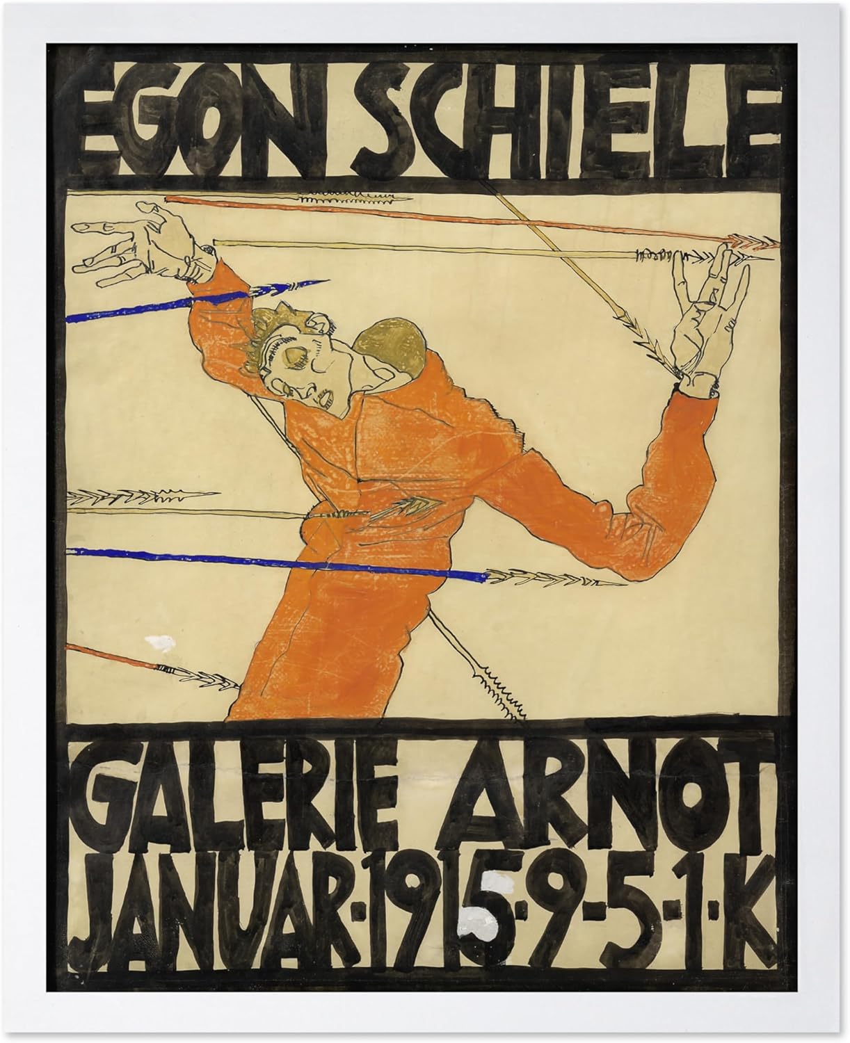 Poster Master Vintage Painting Poster - Retro Expressionism Print - Self Portrait as the Martyred St Sebastian - Gift for Artist, Friend - Wall Decor for Home, Office, 8x10 White Framed