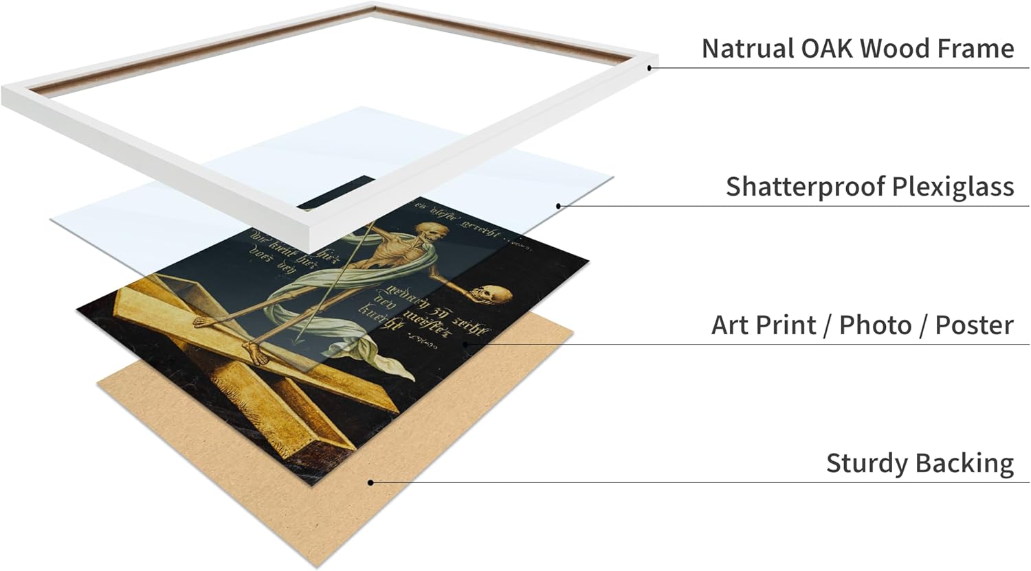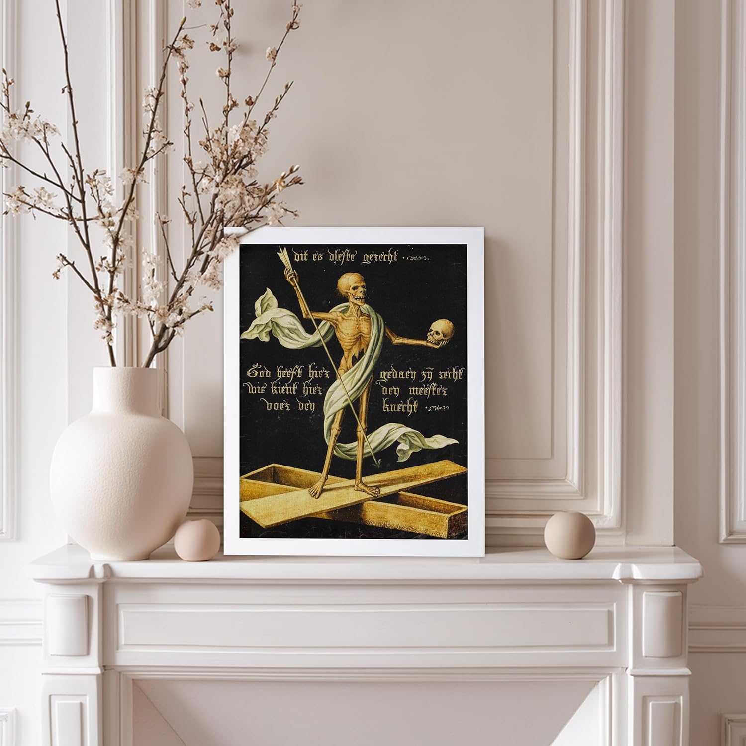 Poster Master Vintage Medieval Poster - Retro Gothic Print - Gift for Artist, Friend - Allegory of Life and Death, Skeleton, Dark, Skull - Wall Decor for Home, Living Room, 8x10 White Framed