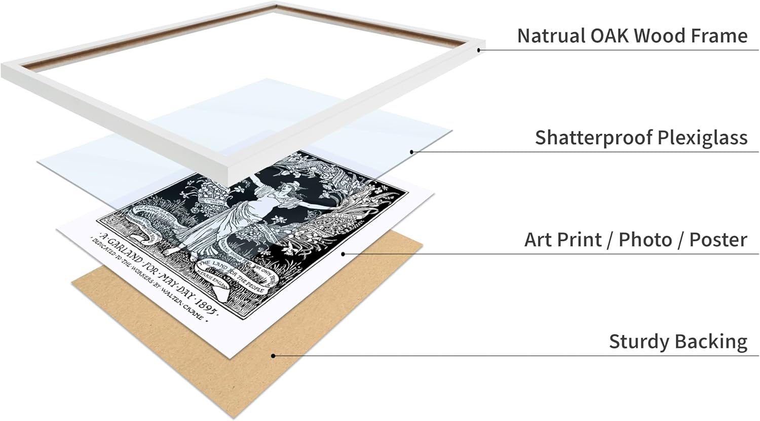 Poster Master Vintage Walter Crane Poster - Retro A Garland for May Day Print - Socialist Art - Gift for Him, Her, Men, Women - Wall Decor for Home, Office, Living Room, 8x10 White Framed