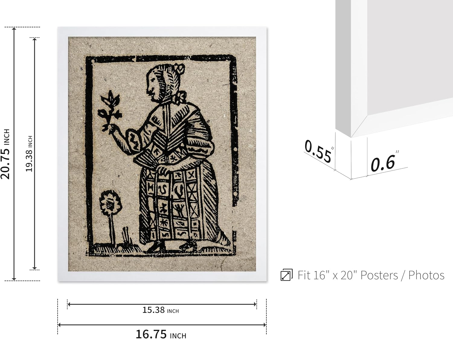 Poster Master Vintage Woodcut Poster - Retro Medieval Print - Gift for Gothic, Horror Fan - Witch Holding a Plant, Magic, Spell, Herbalist - Wall Decor for Bedroom, Dorm, 16x20 White Framed