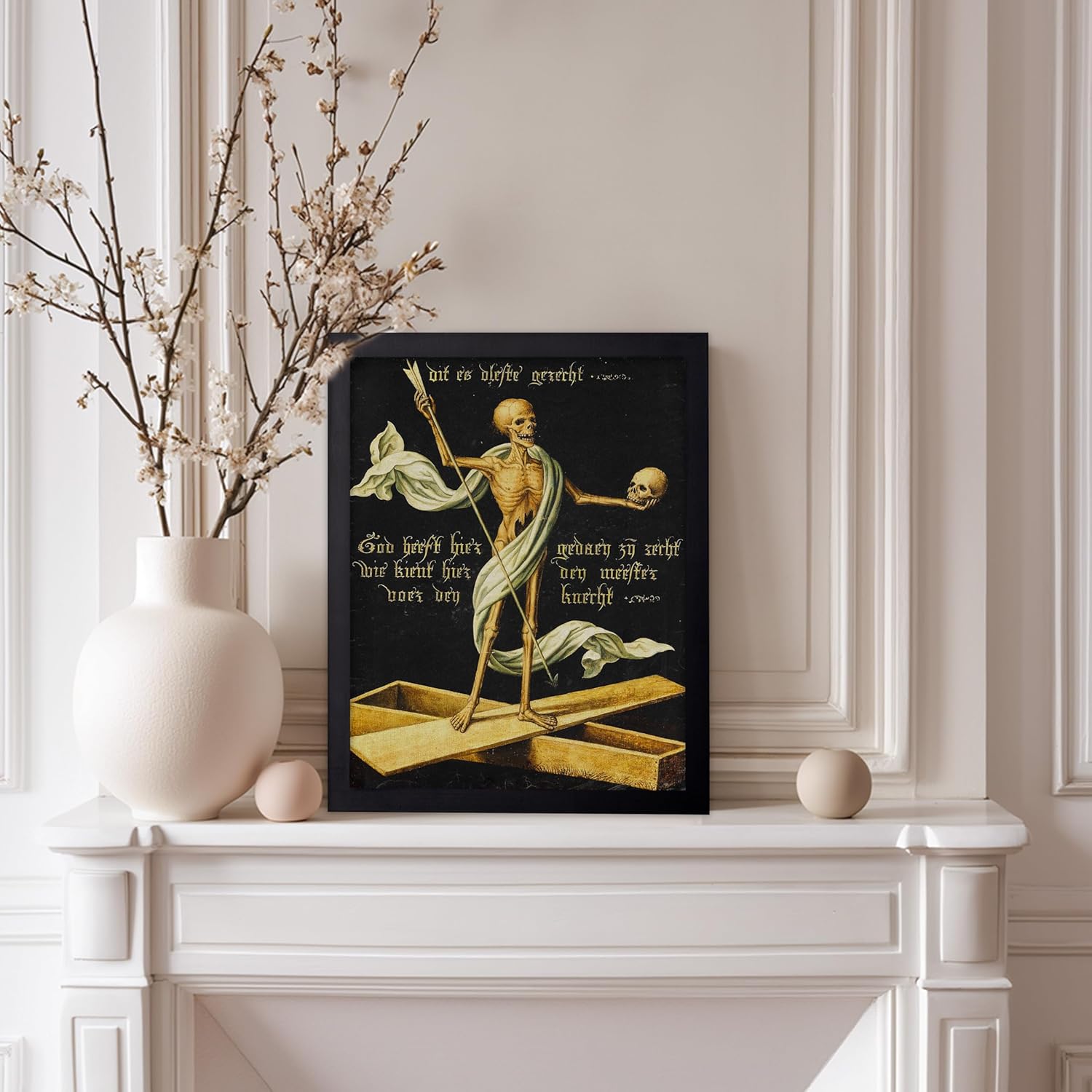 Poster Master Vintage Medieval Poster - Retro Gothic Print - Gift for Artist, Friend - Allegory of Life and Death, Skeleton, Dark, Skull - Wall Decor for Home, Living Room, 8x10 Black Framed