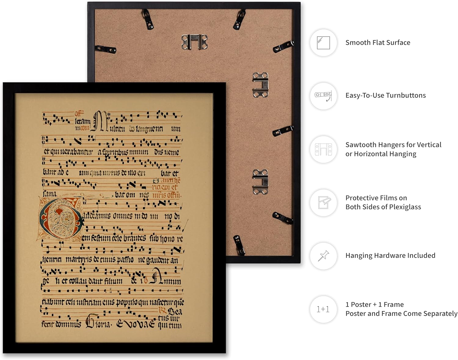 Poster Master Vintage Hymnal Poster - Retro Music Print - Gift for Artist, Friend - Graduale Aboense, Gregorian Chant Manuscript, Score - Wall Decor for Living Room, Bedroom, 11x14 Black Framed