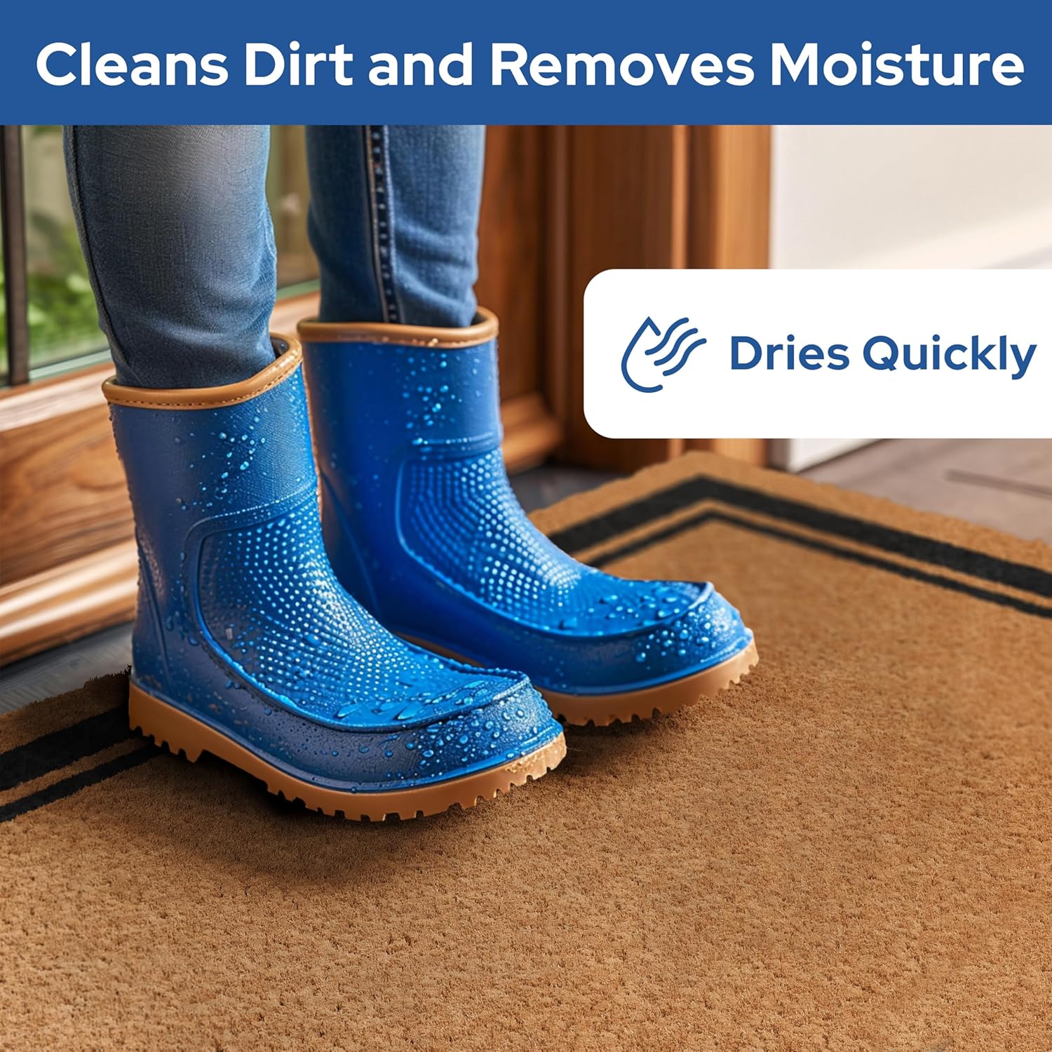 - Slip-Proof - Our non-slip rubber backing keeps the welcome door mat securely in place, preventing slips and falls. Whether you have a concrete, stone, or wooden porch, our exterior door mat outside entrance rug will stay put and keep your visitors safe.