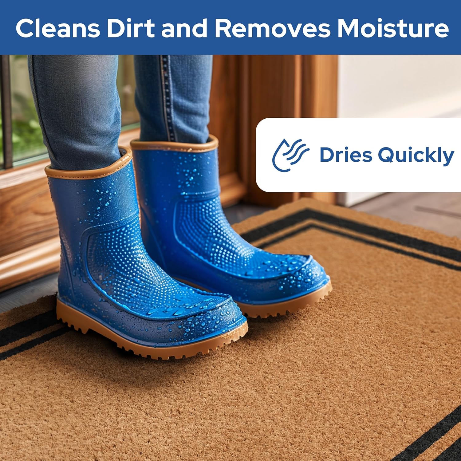 - Slip-Proof - Our non-slip rubber backing keeps the welcome door mat securely in place, preventing slips and falls. Whether you have a concrete, stone, or wooden porch, our exterior door mat outside entrance rug will stay put and keep your visitors safe.