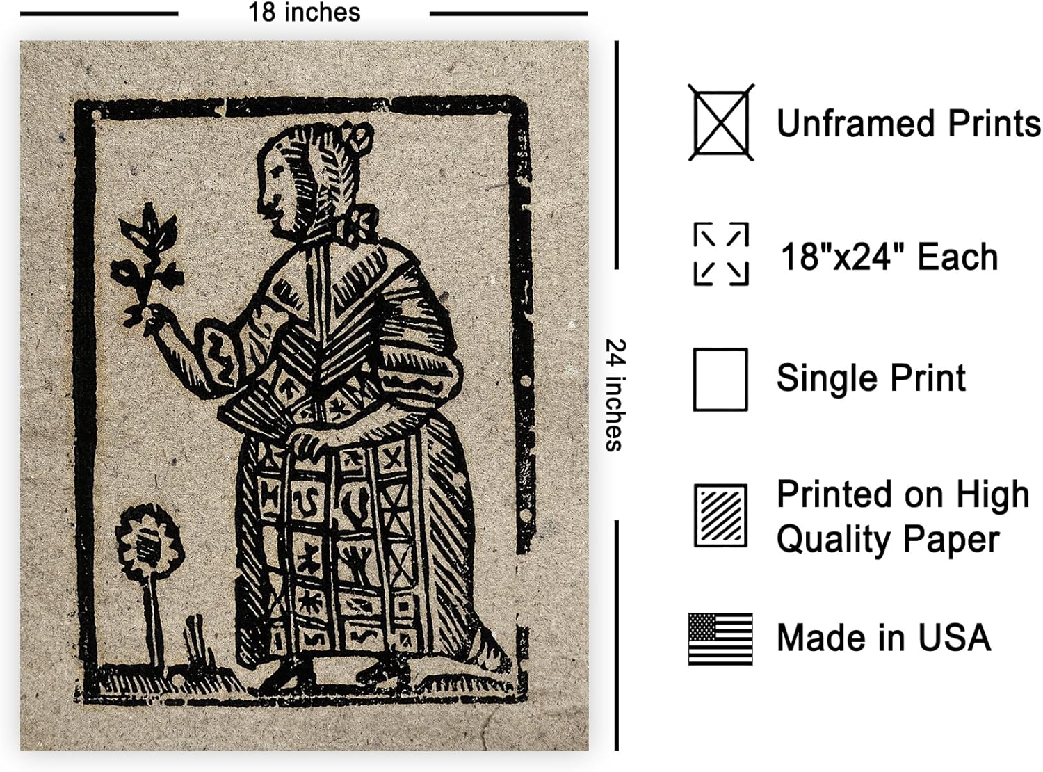 Poster Master Vintage Woodcut Poster - Retro Medieval Print - Gift for Gothic, Horror Fan - Witch Holding a Plant, Magic, Spell, Herbalist - Wall Decor for Bedroom, Dorm, 18x24 Unframed Wall Art
