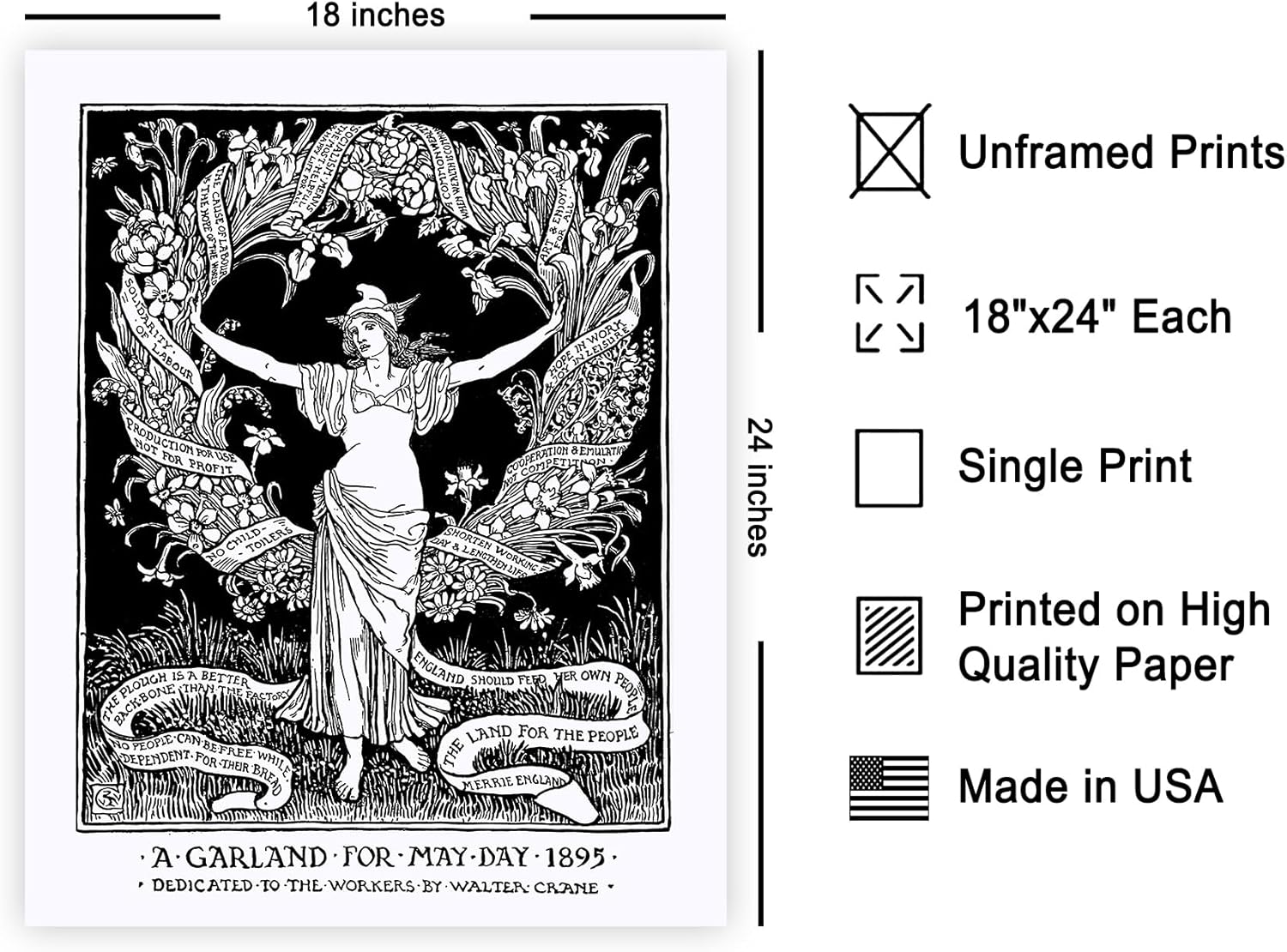 Poster Master Vintage Walter Crane Poster - Retro A Garland for May Day Print - Socialist Art - Gift for Him, Her, Men, Women - Wall Decor for Home, Office, Living Room, 18x24 Unframed Wall Art
