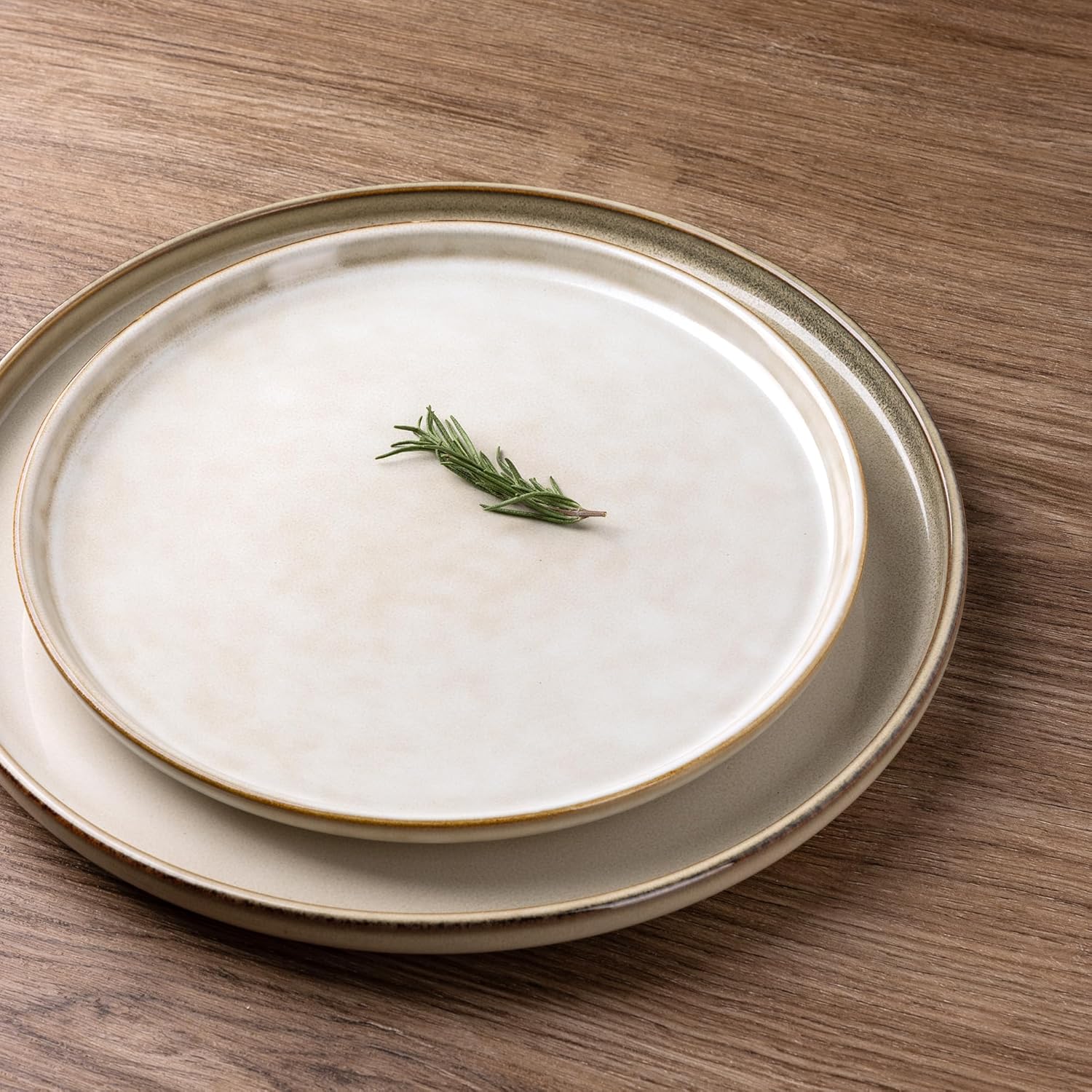 - BEAUTIFUL REACTIVE GLAZE AND SCRATCH RESISTANT: Feature a unique reactive glaze finish, each piece with handcrafted decorative is beautifully individual, adding a touch of sophistication to your table setting, our dishes are fired at 2350℉ for 13 hours making it forming a sturdy and durable scratch resistant glaze, no need to worry about scratches from your forks or knives