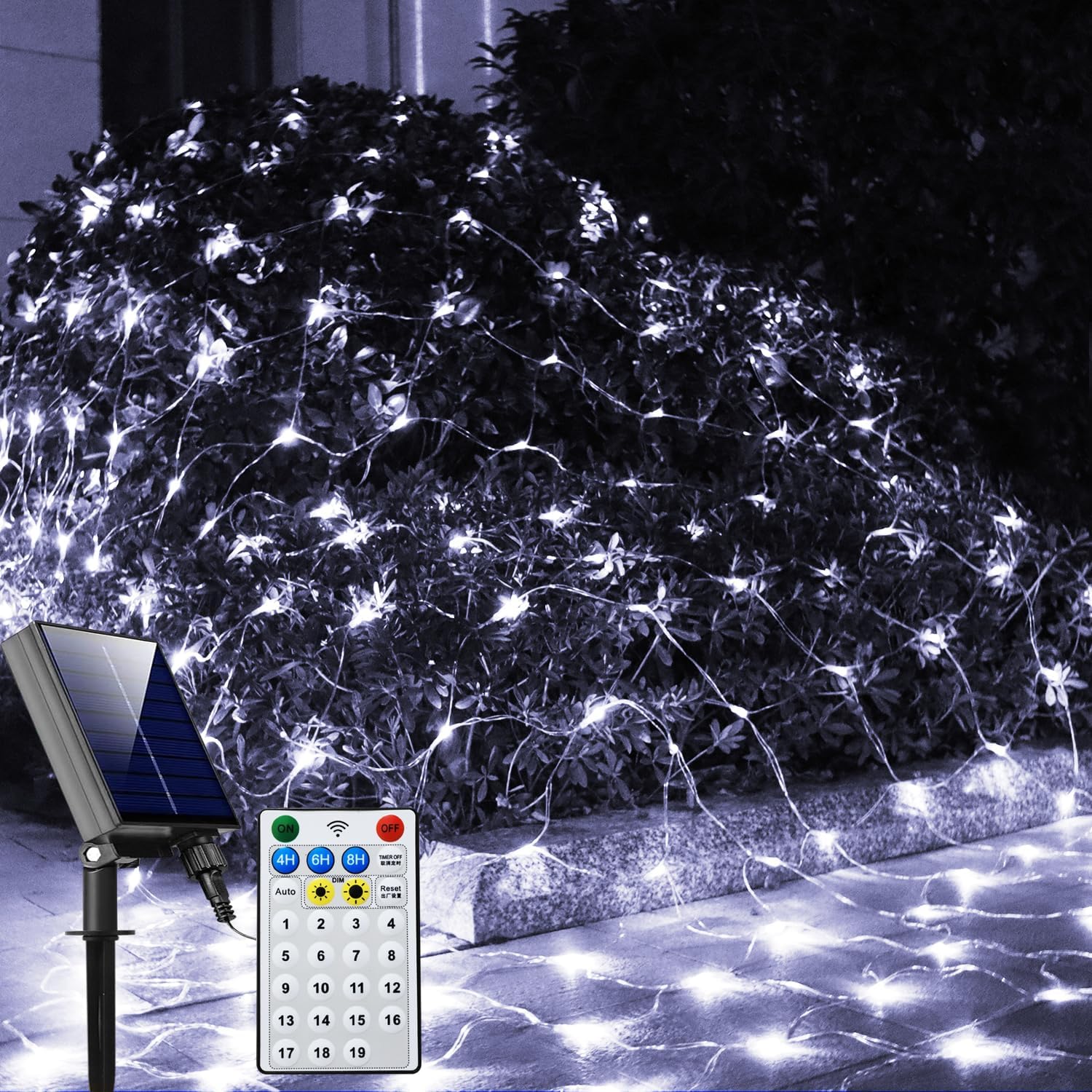 - 3.Easy to Install - Place or hang the net lights on trees, bushes, grass or any other occasions, easy to use as bright and beautiful decorations. Because it is solar so you don’t need to store it after holidays, you can keep it in your yard.