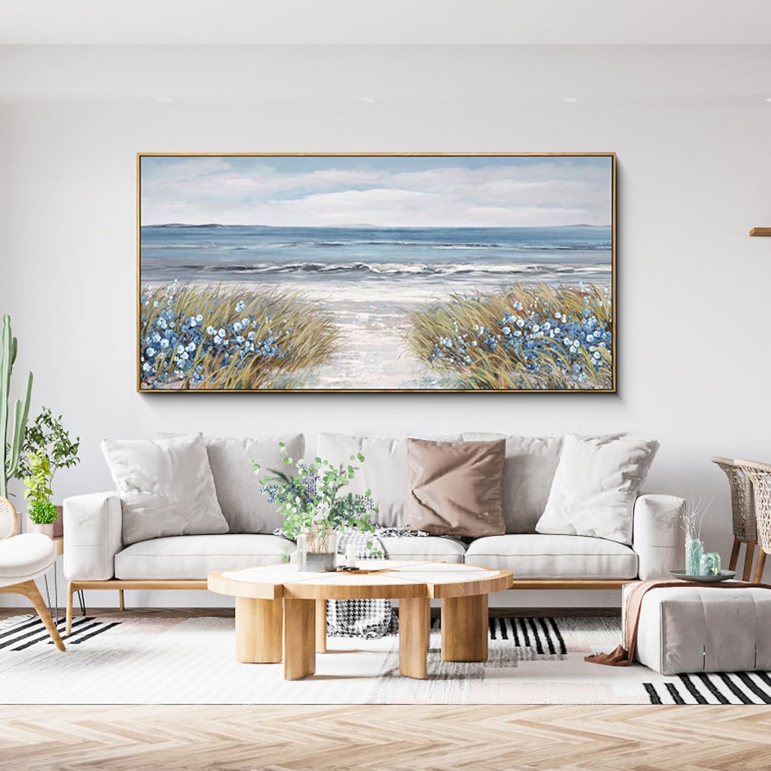 XLSJERST Framed Wall Art for Bedroom Decor - Farmhouse Boho Beach Coastal Vintage Floral Ocean Wall Picture Daisy Flowers Sea Canvas Print Nautical Neutral Seascape Artwork for Home Living Room