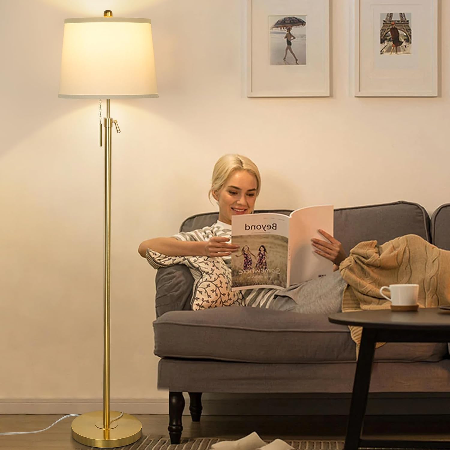 - Adjustable Height Modern Floor Lamp: This tall standing lamp can be adjusted between 55-65" to adapt to the best lighting in any situation, meeting the needs of different age groups, such as children, adults and the elderly. With the most flexible adjustable height pole, this gold floor lamps illuminate a larger area of your space, whether at home or in the office, perfect for lighting in different scenarios
