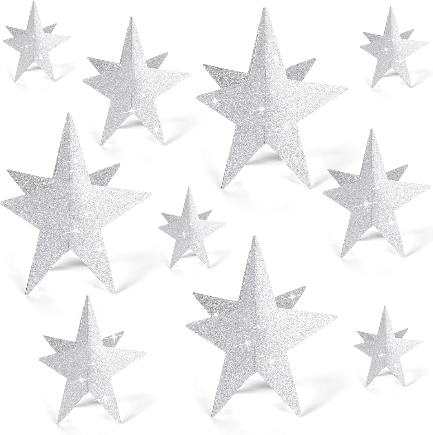 - Material and Stylish Colors: dive into the world of fun with our star party decorations, masterfully crafted with 300g cardboard material for durability; Our star centerpieces come in vibrant hues of glitter silver that set the stage for an unforgettable party atmosphere