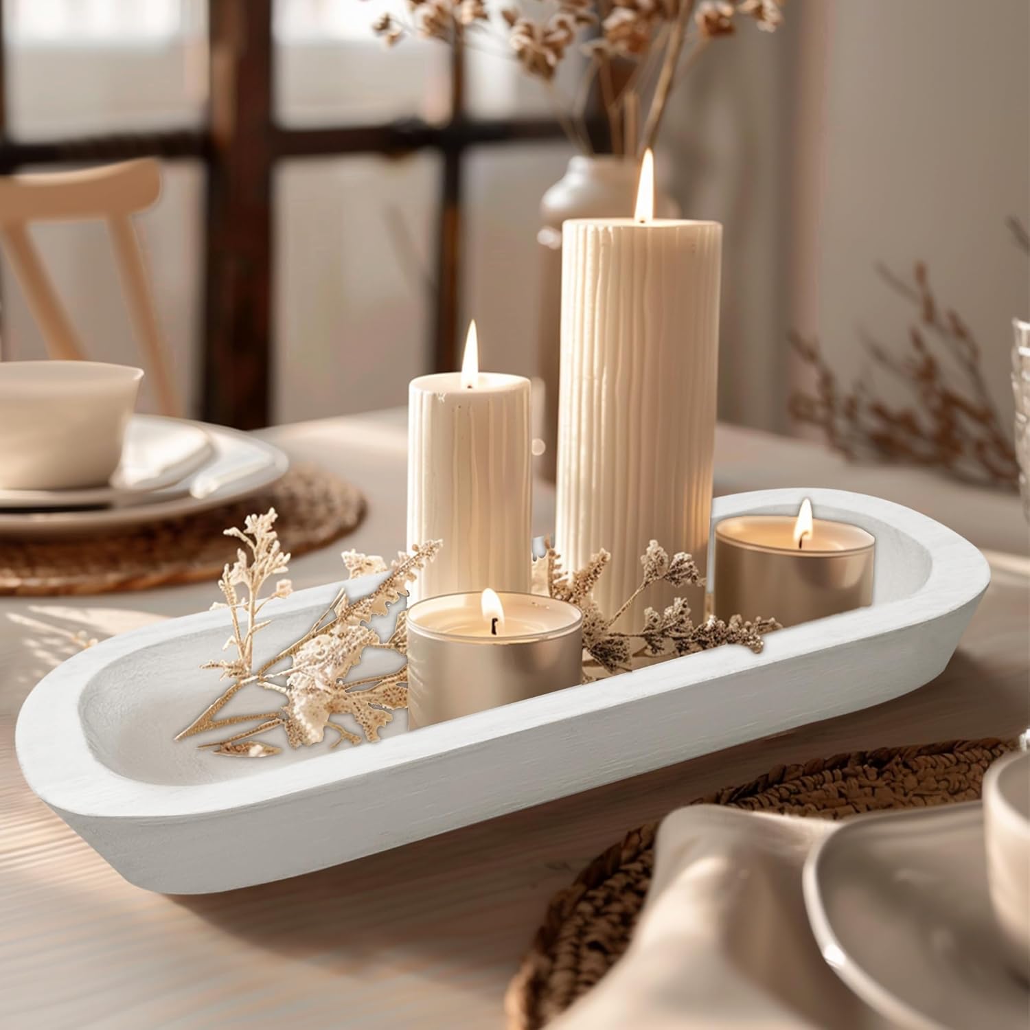 - 【Versatile Utility】Elevate the aesthetic of your living room, kitchen, yard, farmhouse, or any space with these exquisite wooden bowls. They serve a variety of functions, from classic dough bowl usage to small item storage, holding fruits, serving dishes, or even transforming into captivating dough bowl candles. With the adaptable nature, they will seamlessly blend into any setting.