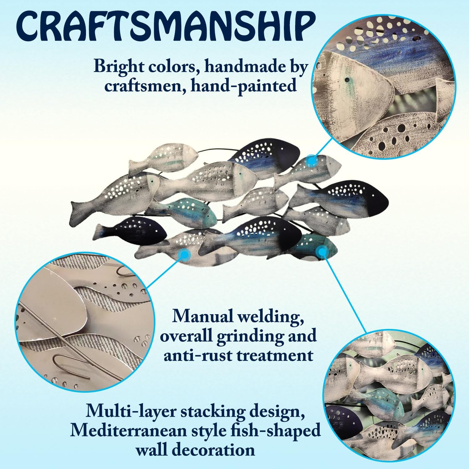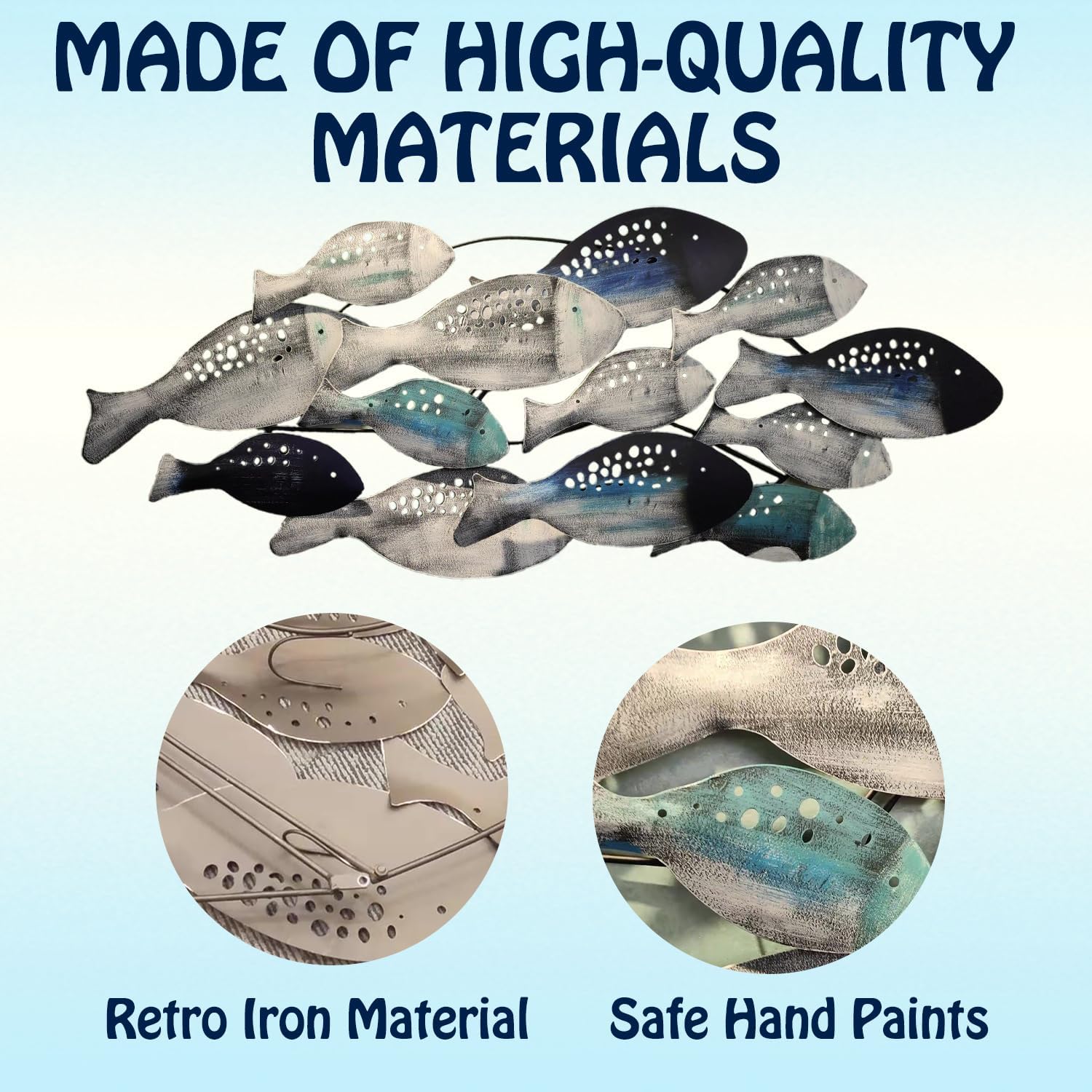 - Hand Painted Metal Fish Wall Décor : Large Size 50" x 21"(126 x 53cm) , handmade metal iron crafts, Old-fashioned fish decoration with a Mediterranean-style marine theme, Smart and elegant, lifelike, retro distressed finish.