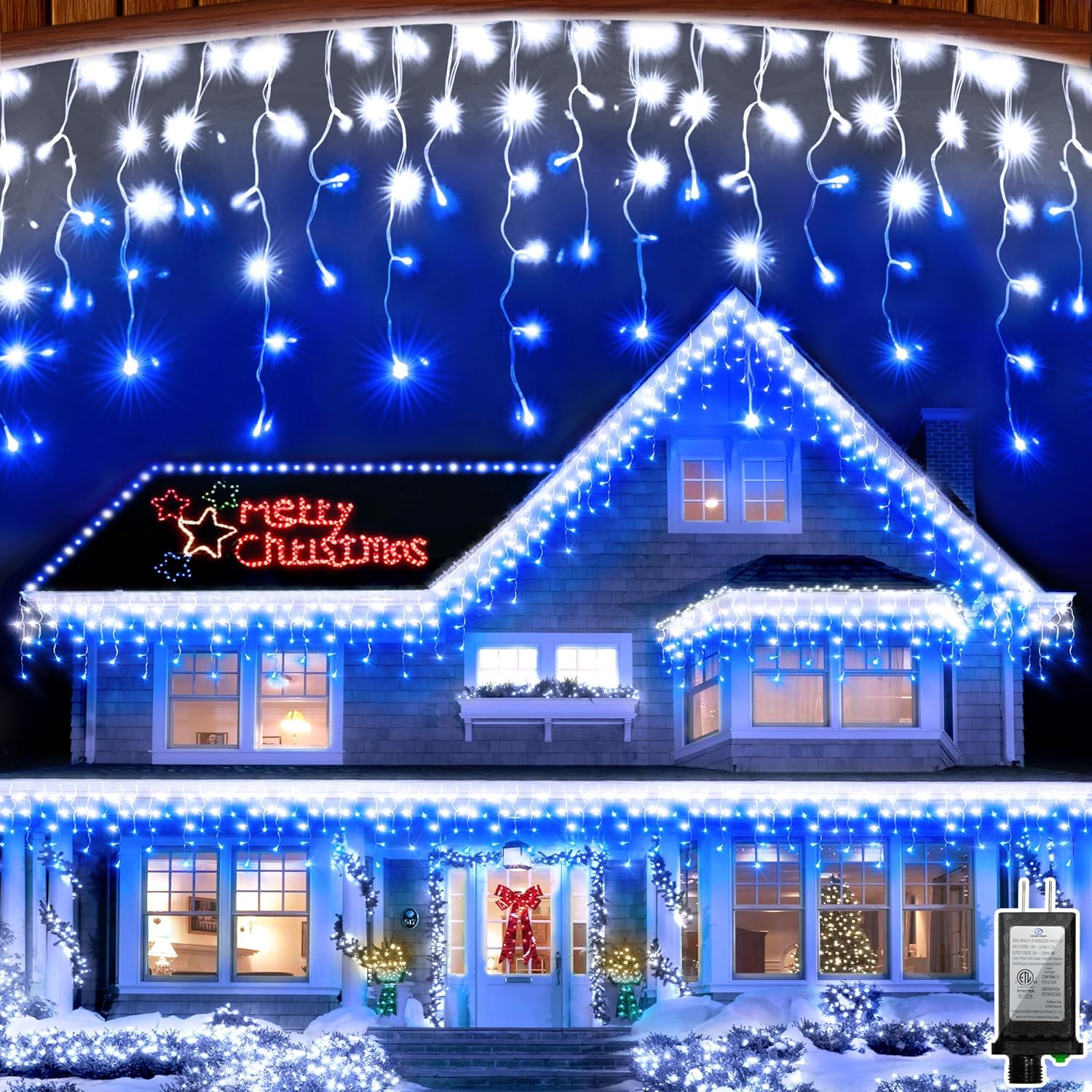 1620 LED Christma Lights with 360 Drops, 164ft Outdoor Hanging lights with 8 Modes & Timer Memory, Outsite Waterproof Curtain String Lights for Front House Fence Tree Holiday Decorations Blue & White