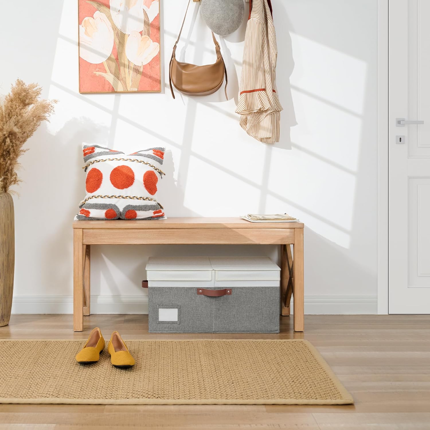 GRANNY SAYS Decorative Storage Boxes with Lid, Large Storage Bins with Double-Open Lid and Divider, Fabric Storage Bins for Clothes, Linen Storage Bins, 63L Closet Storage Bins, White&Gray