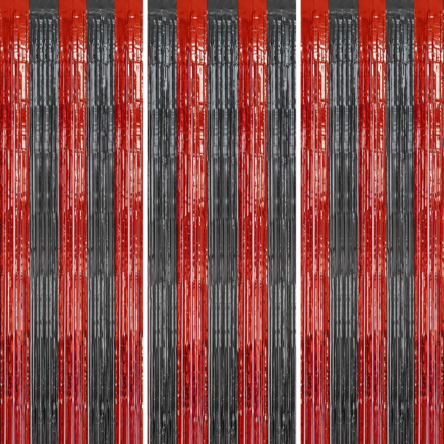3 Pack Foil Fringe Backdrop - Red&Black Shiny Tinsel Curtains for Party Decoration/Photo Booth Props - 3.3x8.2 FT Metallic Foil Backdrop for Birthday, Wedding, Graduation, Christmas.